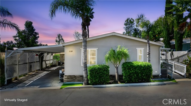 Rancho Caballero is one of the most desirable manufactured home communities in Riverside, and this is one of the newer units in the park — sitting in a prime spot that backs directly up to Mockingbird Canyon. That means no rear neighbors, open sky, and canyon and hill views that you just don't find on most lots in here. Inside, the open floor plan with vaulted ceilings and wood laminate flooring feels comfortable and well-kept. The kitchen is the highlight — dark cabinetry, granite-style countertops, center island, stainless appliances, and a custom track light fixture. Bedrooms are a good size, bathrooms are clean and consistent with the finishes throughout, and the indoor laundry room is a practical bonus. With a large covered deck, storage shed, separate workshop, and a huge carport, this unit has so much to offer! This is the kind of home and community that works well for a wide range of buyers: first-time homeowners looking for an affordable entry point in Riverside, families who want a tight-knit neighborhood with amenities, or anyone who wants a low-maintenance lifestyle without sacrificing comfort. Rancho Caballero offers a lap pool, tennis and pickleball courts, and a full clubhouse — it's an active, well-run park with a real sense of community. This home is priced to sell and won't last long. Don't wait to come check it out!