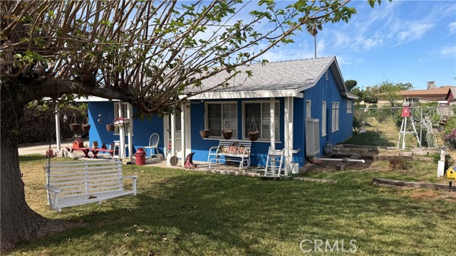 Full of personality and brimming with potential, this storybook blue cottage is a rare find in the heart of Fontana's established Laurel Avenue corridor. Set on a generous 10,000 square foot lot, this 942 sq ft home offers the kind of outdoor space that's nearly impossible to find at this price point, with room to expand, entertain, or invest. The covered front porch welcomes you with classic charm, complete with hanging planters and porch swings that give the property undeniable curb appeal. Inside, the bright living room features tile flooring, a cozy brick fireplace, and large windows dressed in flowing curtains that fill the space with natural light. The galley-style kitchen is well-appointed with granite countertops, white cabinetry, a stainless steel French door refrigerator, and a gas range perfect for any home cook. The home is currently configured as one bedroom with a flex room that offers strong potential to serve as a second bedroom, office, or hobby space. The updated bathroom features wood-look flooring, a walk-in shower, and a cabinet vanity. Step outside and the true value of this property reveals itself, with a large brick paver patio, a detached red barn-style storage shed, mature trees, rose bushes, and a fully enclosed yard with ample parking along the long driveway. The property also includes central A/C and plenty of room to explore ADU potential on the expansive lot. Whether you're a first-time buyer, an investor, or simply someone who wants space to breathe, this charming Fontana cottage delivers character, comfort, and opportunity all in one.