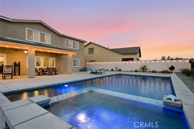 Welcome to your private retreat—where luxury, comfort, and functionality come together in one exceptional home. Perfectly situated on a premium lot backing to a scenic nature preserve, this property offers rare privacy and breathtaking, unobstructed views with no rear neighbors and no HOA. Step into your own resort-style backyard featuring a custom-built saltwater pool and spa, complete with Pebble Tec finish, heated system, Baja shelf, 8.5-foot depth, and an impressive 33,000-gallon capacity. Enjoy multiple water features including a spillover jacuzzi and tranquil waterfalls, all powered by Pentair smart equipment with full mobile control. Designed for entertaining, the outdoor space boasts stamped concrete, drought tolerant landscaping, a covered patio with integrated lighting and fans, a gas fire pit, and a stunning stone BBQ island equipped with a refrigerator, sink, and premium Bull gas grill. Inside, the home is equally impressive with 9-foot ceilings, durable and stylish wood-look plank tile flooring, plantation shutters, and a spacious loft—perfect for a second living area, office, or playroom. A standout feature is the oversized L-shaped walk-in closet—offering the kind of space rarely found, perfect for a full wardrobe, seasonal storage, or a custom dressing retreat. If you’re looking for upgrades…this is the one. Every inch of this home reflects quality, with countless upgrades beyond what can be listed here. The home has been meticulously maintained and is truly move-in ready. Additional highlights include: • Fully owned solar (25 panels) currently no electric bills • Income-producing JADU generating $1,650/month • 3-car garage • Expanded driveway with RV parking This home isn't just gorgeous, it's practical too! Ideally located with easy access to the 215 freeway, this home offers both convenience and connectivity. Enjoy being just minutes from everyday essentials and major retailers including a brand-new Costco Wholesale, The Home Depot, Target, Ross, food take out, and ALDI. Nearby hospitals and medical facilities add an extra layer of convenience and peace of mind. This is more than just a home—it’s a lifestyle. Opportunities like this, with privacy, income potential, upgrades, convenience and resort-quality amenities, are rare. This one has it all- come experience everything it has to offer.