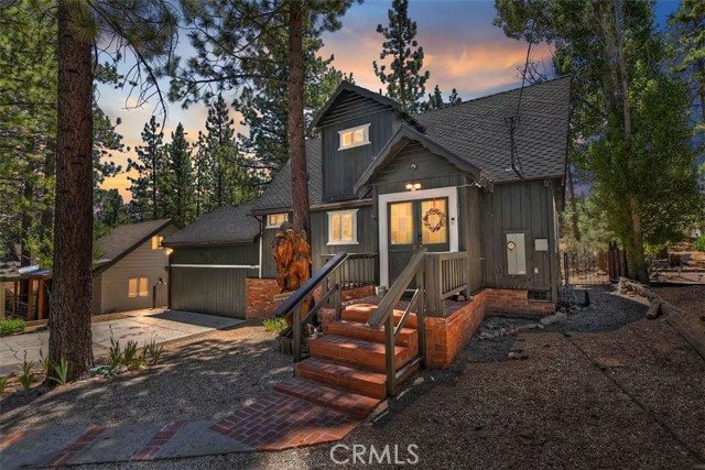 **A True Big Bear Mountain Retreat** Experience the perfect blend of rustic charm and modern comfort in this 1,300+ sq. ft. cabin surrounded by towering pines and backing to private acreage. Beautiful wood floors and tongue-and-groove wood beam ceilings & vaulted ceilings upstairs create a warm, authentic mountain vibe. Features include two bedrooms, two baths, and an open kitchen with stainless appliances and granite counters. Enjoy cozy evenings by the wood-burning fireplace or entertain in the step-down game room with pool table and separate entrance. A spacious deck and fenced yard offer ideal outdoor living. Recent upgrades include a new roof and windows. Conveniently located just minutes from ski resorts and The Village, this successful vacation rental is offered fully furnished and ready to enjoy!