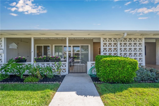 Charming two bedroom one bath, laminate flooring throughout, double paned windows, french entry doors, slider to front patio, slider in Master bedroom, 3 skylights, washer dryer, dishwasher, L-shaped patio on lovely expansive greenbelt Mutual 2 28E Carport 30#2