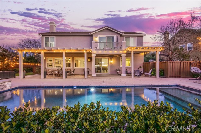 Welcome to Morgan Valley’s most desirable home- where quality, space, and lifestyle come together in a way that truly feels like HOME. Set on an oversized 0.29-acre lot with NO REAR NEIGHBORS, this beautifully upgraded estate offers 4,209 sq ft of modern living space and a private backyard oasis that reflects the Temecula lifestyle.The curb appeal immediately defines true pride in ownership. Inside, a grand formal entry, soaring ceilings, and wood-inspired flooring set the tone as your eye is immediately drawn through the home to views of the backyard oasis beyond, creating an immediate sense of openness and connection.The main level offers excellent flexibility with an oversized room currently used as an office, a full downstairs bathroom with walk-in shower-ideal for guests or extended family. A formal sitting room with an adjacent dining area strikes the right balance between hosting and everyday comfort. At the heart of the home is a stunning kitchen dressed in the most modern upgrades and opens directly to the oversized family room. This stunning kitchen includes custom white cabinetry,farmhouse sink overlooking the backyard, stainless steel appliances, oversized island, walk-in pantry, custom backsplash and lighting. Also enjoy built-in coffee bar, and a butler’s area complete with a wine fridge. The family room is filled with natural light and anchored by a cozy fireplace and large picture windows. Upstairs, a beautifully designed staircase leads to an oversized loft and 4 spacious bedrooms, including a junior suite with private bathroom and an additional guest bath.The primary suite is thoughtfully set apart as its own retreat offering generous space, relaxing sitting area, and west-facing private balcony- perfect for enjoying evening sunsets.The spa-inspired primary bathroom features large walk-in shower, separate soaking tub, dual vanities, and two oversized walk-in closets.The private backyard extends the living space with no rear neighbors-ideal for both everyday living and entertaining. A covered patio opens to a sparkling saltwater POOL AND SPA, outdoor kitchen, fire pit, and multiple seating areas. Additional highlights include an oversized turf side yard, RV/BOAT parking, PAID SOLAR, laundry with sink and storage, and a finished 3-car garage. Morgan Valley living- known for its exceptional schools, strong community and proximity to Temecula wineries, local conveniences, and more. This home is designed for the moments that matter most.