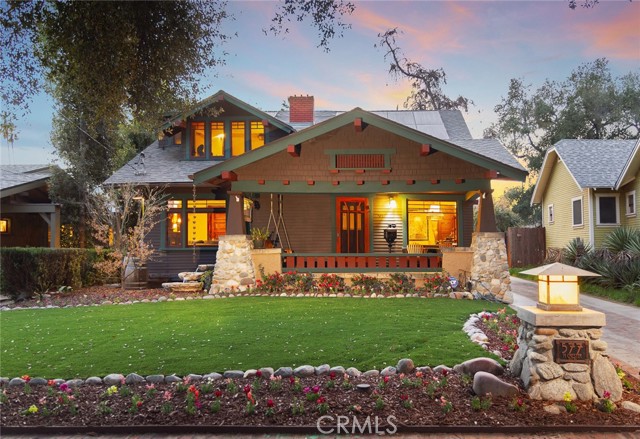 Fabulous restored Craftsman home on a picturesque, tree-lined street near the highly sought-after Bungalow Heaven neighborhood. This architectural gem blends timeless Craftsman character with modern upgrades, offering a rare opportunity to own a piece of Pasadena history. Situated on beautifully landscaped grounds, the property features two homes on one lot. A spacious front porch welcomes you into the main residence with hardwood floors, classic wood moldings, and original built-in cabinetry showcasing true Craftsman detail. Originally configured as a triplex, the property retains three separate meters, offering flexibility for multi-generational living or potential income use (buyer to verify). The main house offers five bedrooms and three bathrooms. The living room features a distinctive clinker brick fireplace, rich wood detailing, and abundant natural light. A formal dining room is ideal for entertaining, and a private office with a closet can function as an additional bedroom. Three bedrooms are located on the main level, with two upper-level en-suite bedrooms, each with its own kitchen, bathroom, and separate meter. The kitchen offers generous storage and connects to a bright breakfast nook overlooking the backyard, plus a dedicated laundry room nearby. The property qualifies for the Mills Act for potential property tax benefits; application and approval required through the City of Pasadena (buyer to verify eligibility). The backyard provides a private outdoor retreat with a Hawaiian-style gazebo, hot tub, grassy area, and mature landscaping. A newly completed 669 Sq Ft ADU includes one bedroom, one bathroom, and a modern kitchen with a large island—ideal for guests, extended living, or rental income. Recent improvements include updated HVAC and ducting, two tankless water heaters, newer roof, and fully paid solar. Low-maintenance artificial turf enhances curb appeal. Conveniently located near shopping, local markets, restaurants, Metro Gold Line, and major freeways.