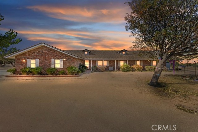 Welcome to this stunning ranch-style home, perfectly situated on a sprawling 98,010 sq ft lot with breathtaking desert mountain views. This spacious 4-bedroom, 2-bath property offers 2,388 sq ft of open living space, featuring beautiful laminate flooring throughout. The modern kitchen boasts quartz countertops, a chic herringbone tiled backsplash, and stainless steel appliances—ideal for gatherings and culinary creations. The inviting family room includes a cozy wood-burning stove, perfect for relaxing evenings. The large main bedroom offers plenty of space and an attached spa-like bathroom with a separate soaking tub, tiled shower, and dual vanity, creating a luxurious retreat. The three-car garage has been transformed into a versatile mancave, providing plenty of space for hobbies or entertainment. The expansive driveway can comfortably accommodate multiple RVs, boats, or off-road toys, with direct access to dirt paths for outdoor adventures. Enjoy ample room to add a pool, an ADU, or customized upgrades. The desert landscape creates a picturesque backdrop, offering tranquility and stunning mountain vistas. Don't miss your chance to own this exceptional property—schedule a visit and make this home yours today!