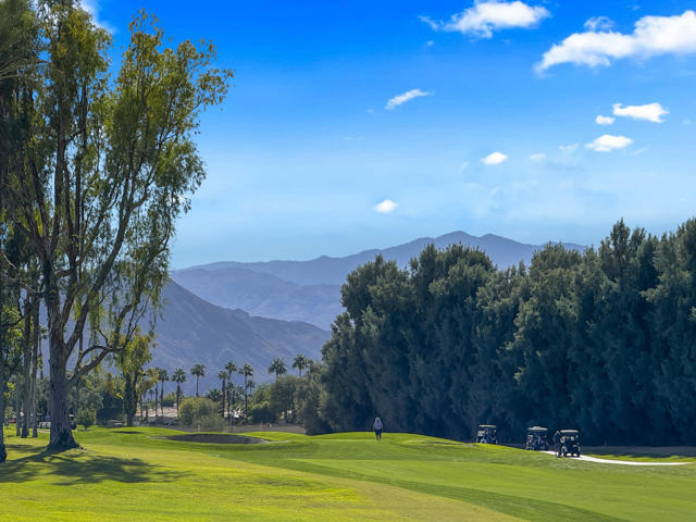Beautifully renovated and move-in ready, this 2,500 sq ft Westerwood floor plan combines style, comfort, and resort living. Located on the 7th hole of the golf course, it offers privacy, sweeping mountain views, and lots of natural light. Enjoy two bedrooms plus a den, three baths, dual living areas, kitchen and fireplace, custom built-ins, and plantation shutters throughout. Outdoor living shines with a covered patio, enclosed front porch, and inviting private pool and spa. With a laundry room, golf cart space, and new tankless water heater, every detail is in place. Heritage Palms, a premier 55+ community, offers a resident-owned championship golf course, vibrant social clubs, and a prime location near shopping, dining, and all the best of the Coachella Valley.