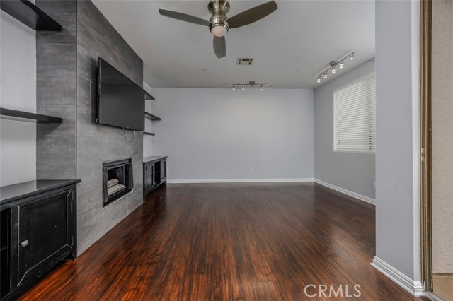 Enjoy the modern look and designer touches in an upgraded unit at the desirable Emerald Villas. The kitchen, bathrooms, living room and bedrooms have been redone bringing a cohesive cosmopolitan look. Kitchen has newer cabinets with black quartz countertops, mosaic backslash, stainless steel appliances and cooktop vent. Livingroom has statement making fireplace and stylish shelving. Warm looking hardwood flooring and designer paint that run throughout the entire unit give it a rich look. Bathrooms have newer shower doors, title, vanity and flooring. No common walls and two parking spaces help elevate this special property and make it unique. Community has resort style pool, beautiful entry courtyard, rooftop and gym for your workouts. Great downtown location close to the nightlife, park, bike path, freeways and everything you need and want for a fantastic urban life.