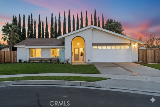 Fully Renovated Single-Story Gem on a Peaceful Cul-de-Sac. Welcome to 242 E Paddle Wheel Circle, a completely renovated, move-in-ready home that has been thoughtfully updated from top to bottom. This single-story house on a quiet interior cul-de-sac offers the rare combination of modern finishes and an unbeatable location backing onto a neighborhood park. Step inside to discover 1,618 square feet of bright, open living space featuring fresh interior and exterior paint, brand-new laminate flooring throughout, and an inviting living room with a cozy fireplace. The updated kitchen shines with new stainless steel appliances, gleaming quartz countertops, and convenient self-closing cabinets. It's perfect for both daily living and entertaining. All four bedrooms and two full bathrooms are located on one level, with the bathrooms beautifully remodeled to feature new tile and modern fixtures. Energy-efficient dual-pane windows flood the home with natural light while reducing utility costs. Outside, newly landscaped yards frame the property, and the attached two-car garage boasts sleek epoxy flooring. Situated within the highly rated Orange Unified School District, this home is close to Fletcher Elementary, Cerro Villa Middle School, and Villa Park High School. With its park-adjacent location, turnkey condition, and thoughtful upgrades, this is the one you've been waiting for. Schedule your private tour today and experience turnkey living at its finest.