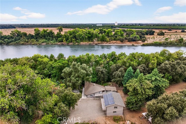 Riverfront Retreat Just 10 Minutes from Chico! Escape to your own private oasis on 3 RIVERFRONT acres, nestled behind Pine Creek Unit of the Sacramento River National Wildlife Refuge. The main home has been beautifully remodeled with new metal roof, electrical, new ductless zoned mini split heating and cooling system, owned solar, imperfect smooth drywall - the seller's haven't overlooked a thing! Enjoy a chef’s kitchen with Wolf range, leather top granite countertops, custom soft-close cabinets, and a custom rock range hood. Gorgeous two-story windows line the living room and add incredible natural light. There are new laminate floors, carpet, recessed lighting, and a striking wood-burning stove with a custom rock hearth create a warm and inviting atmosphere. The master suite is equally impressive with wood-beamed ceilings, wood-paneled accents, and a spacious walk-in closet. The second unit over the garage is also tastefully remodeled with it's own balcony, spacious open concept kitchen and living room, walk-in closet, making it ideal for guests, multi-generational living, or rental income. Outside, you’ll find a brand-new concrete patio, metal fencing, an oversized finished two-car garage, covered storage, 11 different varieties of fruit trees, and mature shade trees that add to the property’s charm. Don't miss this rare opportunity to own a slice of riverfront paradise, just minutes away from town. For full list of upgrades, features and more, call your favorite REALTOR today!