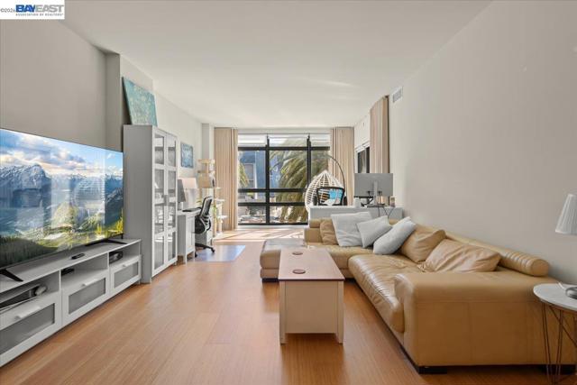 Experience urban luxury in the heart of Downtown San Jose at The 88. As one of the area’s largest floor plans, this refined residence features floor-to-ceiling windows that flood the home with natural light and frame vibrant city views. The modern kitchen serves as a central hub with stainless steel appliances and recessed lighting, flowing seamlessly into a living room that opens onto a spacious private balcony. A bright primary bedroom offers brand-new carpet, a walk-in closet, and an ensuite bath with a dual-sink vanity, while the versatile bonus den provides an ideal space for a home office or guest room. Residents enjoy hotel-quality amenities including 24-hour security, a heated pool, a fitness center, an entertainment lounge, and a 21st-floor observation deck. With a dedicated parking spot on the same level as the unit and HOA dues covering water, this oasis is just steps from SJSU, premier dining, and transit.