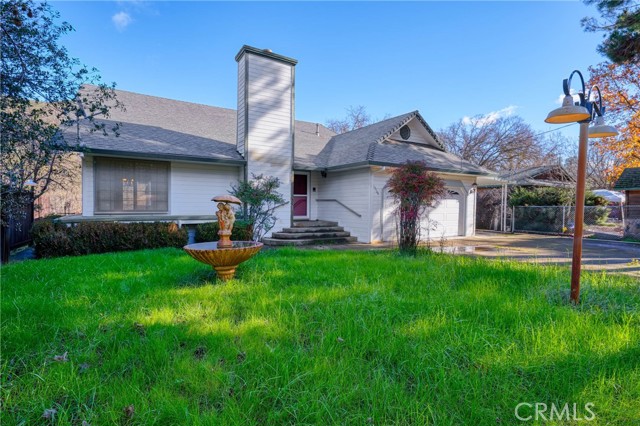 Beautiful single level home in a premier neighborhood with a pool and exceptional curb appeal. Three-bedroom, two-bath home located in one of the area’s most ideal locations. Convenient to town but a private and peaceful setting. The exterior features a brick driveway, custom retaining walls, and beautifully maintained and mature landscaping. Inside, the home has been meticulously cared for and includes an updated kitchen, fresh paint, new carpet, and a spacious primary suite with dual sinks and a walk in shower. The lifetime metal roof, central heat/air and whole house fan will help with efficiency and comfort. The backyard is an entertainer’s dream with a large covered breezeway and bar area in the covered patio, and a flagstone patio surrounding an in-ground pool with a waterfall feature. The property extends beyond the fence line and includes mature fruit trees, a detached work shed, and a greenhouse—providing both functionality and charm.