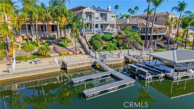 Main Lake Waterfront in the Exclusive Gated Community of Canyon Lake! Welcome to this inviting single story lakefront home featuring an expansive entertainers covered patio overlooking the water plus a large concrete deck, perfect for gatherings, sunbathing, or outdoor dining. Enjoy your newer U-Dock, ready for your boat and lake toys, just step outside and be on the lake in seconds. The home offers a comfortable and open layout with views from the spacious living area. The kitchen has tasteful upgrades like granite counter tops, an electric cooktop, stainless steel refrigerator, and warm maple cabinetry. Enjoy comfortable living with a cozy wood burning fireplace in the family room. Plantation shutters and ceiling fans thru-out the home The double door entry and tile flooring add an elegant touch. The generous sized bedrooms provide plenty of space and flexibility. The front and rear yard landscape is designed with low maintenance landscaping and palm trees, offering great curb appeal with minimal upkeep! Move in ready and full of charm. Live the resort lifestyle with boating, fishing, private beaches, clubhouse, golf, pickleball, equestrian center, and 24 hour guarded gates.