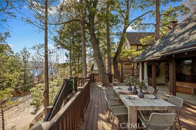 Welcome to Your Dream Lake House Retreat in the highly sought-after North Bay neighborhood of Lake Arrowhead! This charming home is positioned just across the street from Arrowhead Lake Association trail access, a great starting point for a hike on the lake and weekend get-away! It offering full lake rights, stunning winter lake views and outdoor spaces perfect for sunny summer days. Expansive decks invite you to relax and take in the year-round beauty of this gorgeous mountain town. Inside, experience the perfect blend of timeless charm and modern luxury. Original custom woodwork brings a warm, inviting character to every room, such as updated bathrooms and laundry featuring premium tile & glass, and custom fixtures throughout. Vaulted ceilings and exposed wood beams create a spacious yet cozy atmosphere, with walls of windows that frame serene mountain views. Evenings are perfect by the fireplace or at the full bar, while a separate lounge area offers a sophisticated space for media, card games, or a casual tasting night. The upstairs includes a spacious guest room with a large storage closet—ideal for future expansion or customization. The primary is tranquil and opens to the lower deck for an easy stay. Whether you’re looking for a cozy family retreat or a stunning space to entertain, this home strikes the ideal balance between rustic tradition and upscale comfort. Make your lakeside dream a reality! Don’t miss this chance to own a true Lake Arrowhead lakeside dream in one of the most desirable neighborhoods—schedule your viewing today!
