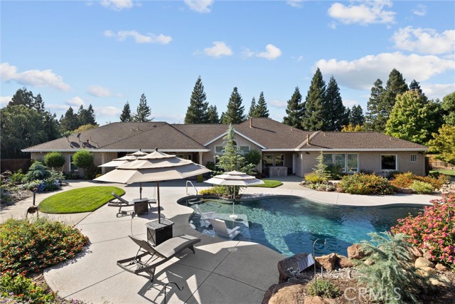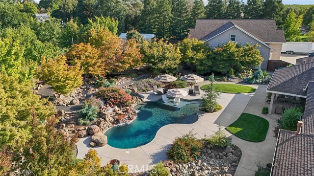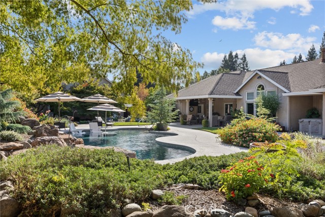 Welcome to your Dream Home: A Story of Luxury and Serenity! Nestled in a private and serene setting, this exceptional property is a harmonious blend of elegance, practicality, & tranquility. From the moment you arrive, the wide circular driveway welcomes you into a world of comfort & thoughtful design. Step inside and discover a home crafted for both beauty & functionality. The interior boasts seamless accessibility, with wide hallways & no steps, making every corner of the house easy to navigate. The heart of the home is the gourmet kitchen, where modern convenience meets classic charm. Soft-close drawers, a stunning wood-paneled Thermador refrigerator, a Bosch dishwasher, & an induction cooktop with easy-clean features make cooking a pleasure. The heated floors provide an added touch of luxury, ensuring every step feels warm and inviting. The great room is a cozy retreat, with a gas fireplace & expansive windows that frame the breathtaking backyard. Just beyond the glass lies a tranquil oasis, complete with koi ponds, waterfalls, and lush landscaping that comes alive with hummingbirds, butterflies, & dragonflies. This is a space where mornings begin with coffee on the patio & evenings end with peaceful relaxation. The primary suite is a true haven, offering stunning views of the backyard & direct access to a hot tub-ready patio. The en-suite bathroom is a spa-like escape, featuring a jacuzzi tub, & heated floors for ultimate comfort. Outdoors, the resort-style beckons with a sparkling pool with a Baja shelf perfect for lounging in the sun, while the cascading waterfalls adds a tranquil ambiance. The expansive patio, equipped with misters, a natural gas hookup for a BBQ, & water access for an outdoor kitchen, is ideal for entertaining or simply enjoying the beauty around you. This property also includes a two-bedroom ADU, perfect for guests or extended family, & a fully equipped shop that accommodates an RV, Trailer, or Boat! The shop features air compressor reels, hot water spigots, & a versatile attic space ready to be transformed into a game room, additional storage, or hobby room, the options are endless. With smart home features controlling sprinklers, irrigation, and pool systems, as well as a whole-house generator & a robust well system delivering ample water, this property is as efficient as it is beautiful. This is more than a home - it's a sanctuary designed for living life to the fullest. Schedule your private tour today!