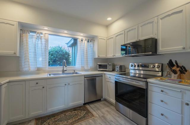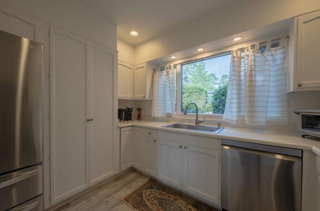 Welcome to this Cozy 1-bedroom, 1-bathroom home in the beautiful retirement community of Del Mesa Carmel. With approximately 1,000 square feet of living space, this cozy residence offers a comfortable living arrangement. The open kitchen is well-equipped with Newer appliances, and the dining area is conveniently situated within the living room, providing a versatile and functional layout. The home features radiant floor heating and a fireplace, ensuring warmth and comfort during cooler months. Feel free to sit on your balcony over looking the Stunning Forest and a peek of the ocean. When you want to have fun a few steps away you can enjoy all the amenities that Del Mesa has to offer including the highly acclaimed Woody's Restaurant & Lounge, This 55+ community with 24/7 guard gated security and just minutes away from the prestiges Golf Courses, Shopping, Beaches, Vineyards, stunning Coastline, and art galleries.