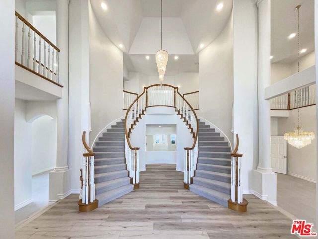 A rare blend of grandeur and everyday ease, this 6 bedroom, 7.5 bath home on a quiet culdesac delivers stunning curb appeal and panoramic views. A grand doublestaircase entry and soaring ceilings set an elegant tone the moment you arrive, while a front circle drive and 4car garage make hosting effortless. Designed for gatherings, the expansive layout centers on a chef's kitchen with a large island featuring a cooktop and prep sink, granite counters, double ovens, and stainless appliances. Sliding doors open to a covered patio with an outdoor kitchen, perfect for sunset dinners. Enjoy your personal putting green and the privacy of the fenced yard. Vaulted ceilings and walls of windows frame the views and fill the living spaces with light. All six bedrooms feature private ensuite baths for ultimate comfort. The primary suite is a true retreat with a custom walkin closet and a corner spa bath offering double sinks, a jetted tub, and a separate shower. The open, airy second floor only amplifies the vistas and adds flexible spaces for media, fitness, or lounge areas. Set within the toprated Walnut Valley School District, this impressive home balances tranquility and convenience -luxury living with room to gather, unwind, and take in the view.
