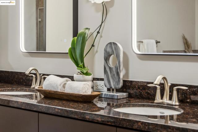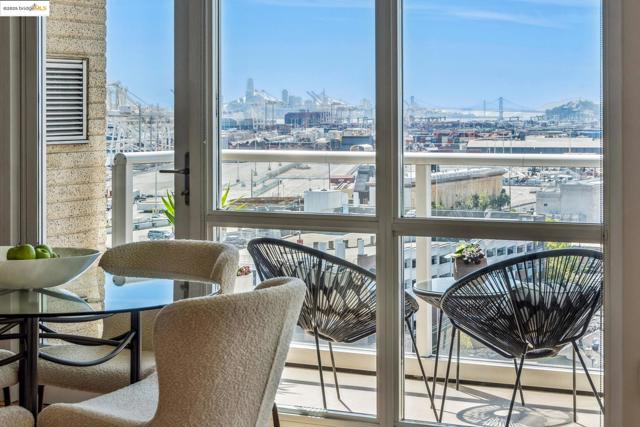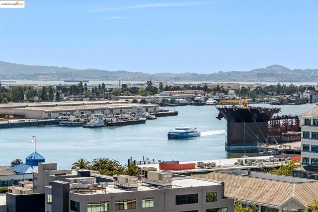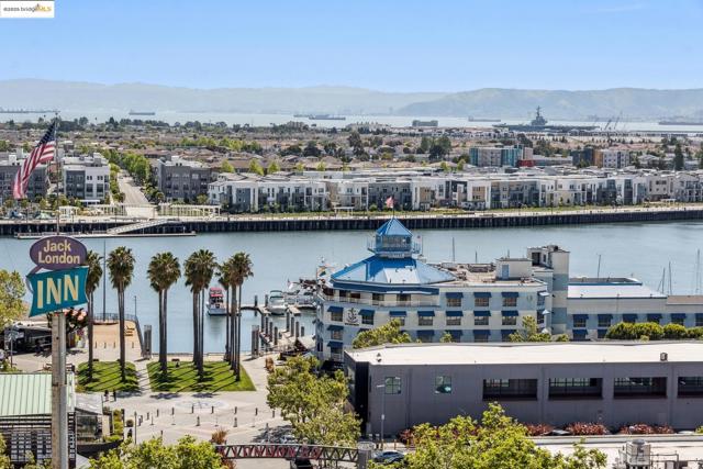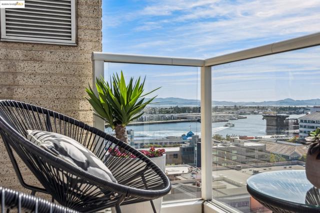 Welcome to this special end unit that was formerly a sales model at the desirable Ellington. The unit is bathed in dazzling sunlight by walls of glass that beautifully frame the stunning water and city views. The luxe Primary Suite has two closets, a private balcony with Downtown views and generous spa-like full bathroom featuring soaking tub, separate glass shower enclosure and dual sinks. The second bedroom has incredible views through floor to ceiling glass on two walls. A second full bath conveniently adjacent to the second bedroom is updated and includes a shower over tub. Beautiful engineered wood floors are throughout the kitchen, living room and dining area which flow seamlessly together. A second balcony off the dining area is perfect for al fresco dining, enjoying your favorite beverage or watching the boats sail by. A half bath and in-unit laundry just off the entry complete the offering. RARE THREE deeded garage parking spaces. Amenity rich building with front desk attendant, pool, fitness center, club room and storage. BART, the Ferry, Amtrak, and easy highway access are all within reach. Jack London Square is a Walker's Paradise -- WALK SCORE OF 97! Farmer's Market on Sunday. Views: Downtown