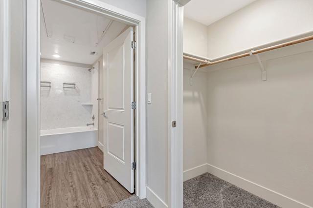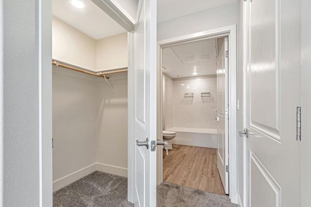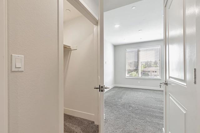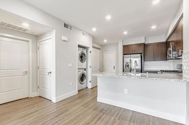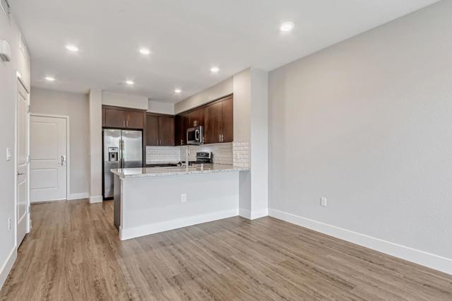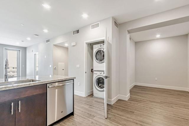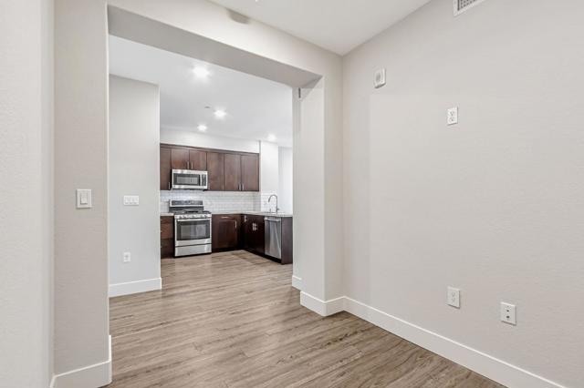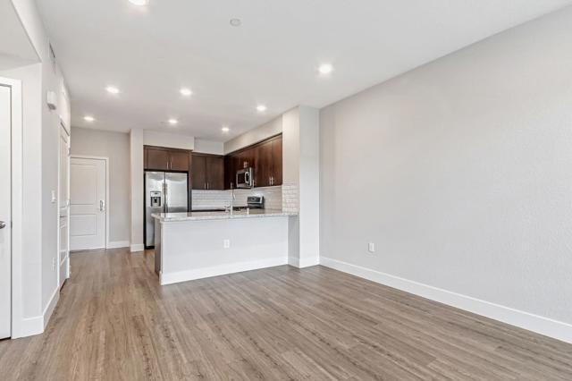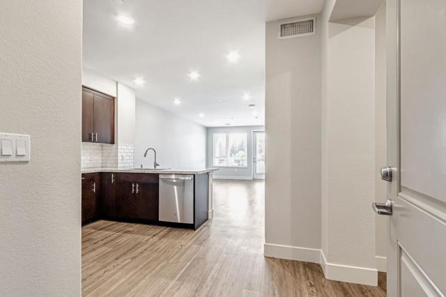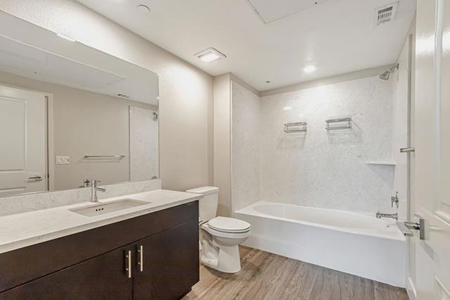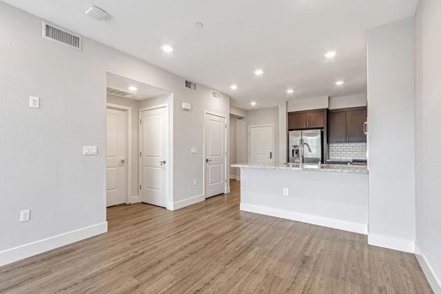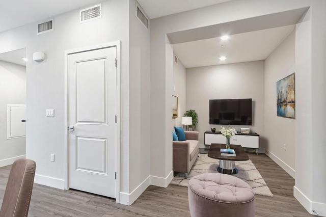 Great location: near parks, shopping, Kaiser, freeways, schools, Costco, DT SJ, biking ,trails, community pools, spa, gym +much MORE. Safe, secure entry and garage, Amazing value 1 bedroom PLUS office/ ( optional guest accommodations bed).Freshly painted throughout, It offers unique modern features, parking, great location and amazing amenities. Luxury vinyl plank flooring, recess lighting, brand new interior paint, Quartz counter tops in kitchen and bathroom, Full backsplash, GE Stainless steel appliances including 30" free standing gas convection oven, dishwasher, over the range, microwave oven with range sensing technology, and counter depth side by side refrigerator. Separate dining area. Master Suite with flat screen pre-wire and HDMI receptacle.2 walk in closets. Balcony with a view of the mountains. Modern Moen fixtures. Two panel square interior doors with upgraded contemporary hardware. Stackable washer and dryer(in unit).Central heat and air conditioning. Amenities include lap swimming pool, gym and modern clubhouse. Great location! Conveniently located near Highway 85, Highway 101, Caltrain station, grocery stores, retail, parks and hospital. Guest parking available.1 Car garage parking. It is a high value modestly priced home!