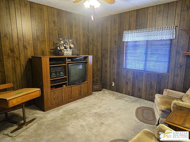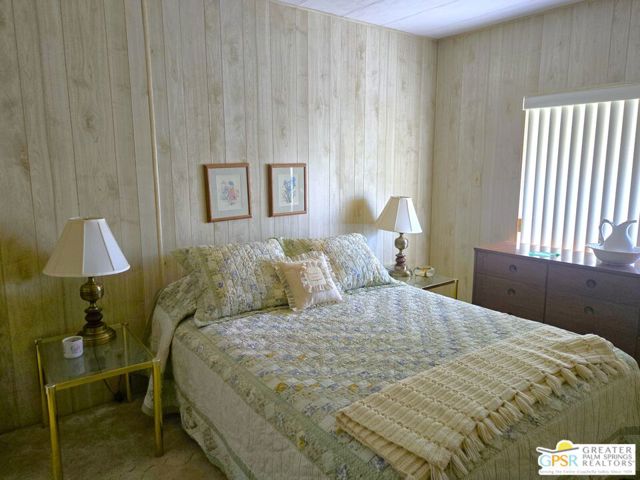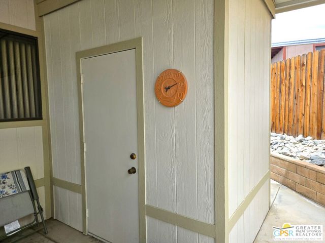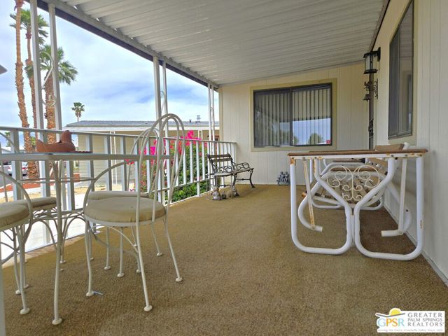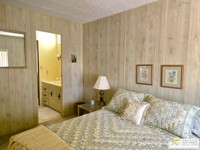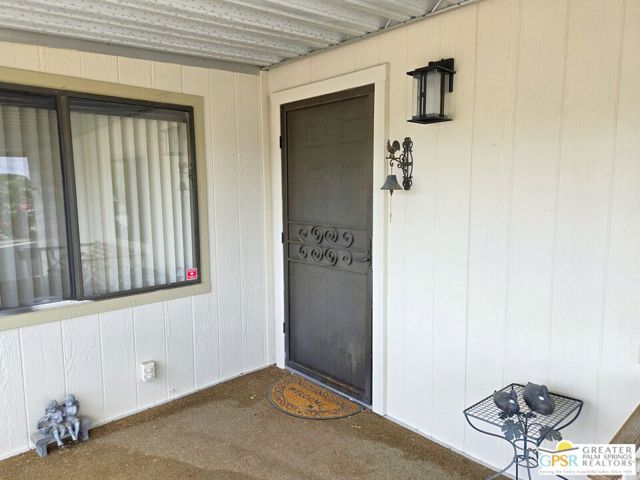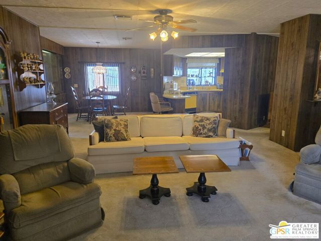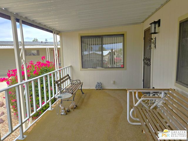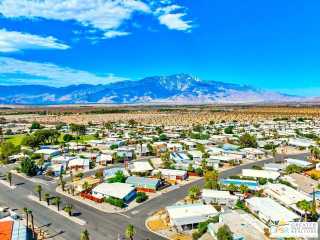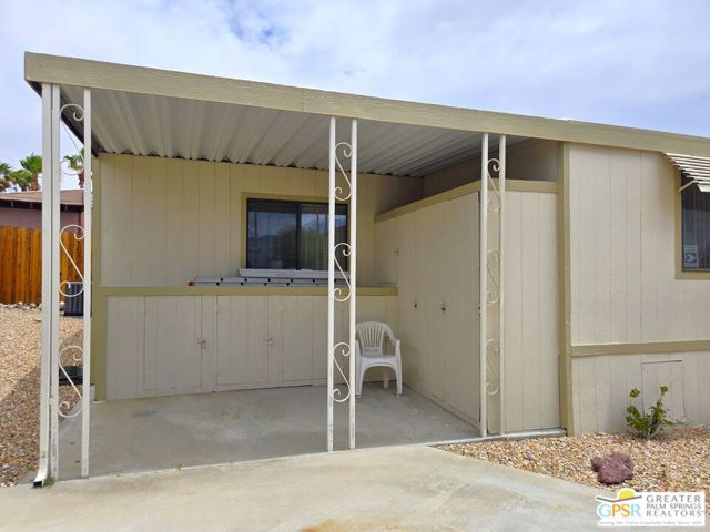 Nestled within the very lively and Active 55+ golf community of Desert Crest Country Club that is set in a beautiful rural setting, this one of a kind Three Bedroom and Two Bath, expansive 1690 Square Foot Manufactured Home built in 1978 offers a unique blend of comfort and convenience tailored for those seeking an active and vibrant 55+ lifestyle. Installed on one of the few oversized Lots in the community, the circular driveway and extra parking means you can have up to an RV here. Located in the heart of Desert Crest Country Club you are not far away from the huge Clubhouse, mineral spring water pool & several spas, and Par-3 golf facilities that are free to Owners, this home enjoys the perks of a quality lifestyle, surrounded by the scenic beauty of the desert landscape in the Western Coachella Valley. The Desert Crest Country Club community boasts a 9-hole PAr-3 golf course, inviting residents to enjoy leisurely rounds amid the picturesque setting of pond and mature trees that boast views of Mounts San Jacinto and San Gorgonio and the iconic windmills of the Banning Pass. This oasis extends beyond the golf course, offering a multitude of amenities enhancing your daily life. Residents here enjoy a multi-faceted Clubhouse featuring a healthy mineral water Pool and Spas, providing a serene escape and a hub for plenty of social connections. Indoor Shuffleboard and other activities are a welcome diversion here at the Clubhouse, with many interior facilities to keep you moving. The onsite cafe caters to culinary cravings for breakfast or lunch, the dog groomers attend to furry companions, and the real estate office ensures all needs are met with ease. These conveniences foster not just a residence but a sense of belonging within a home and community bound by shared experiences and vibrant camaraderie. At the center of it all you step inside this well-maintained home into a semi-formal Entry, and you'll discover its thoughtfully designed interior that includes a Living Room and Dining Area, Retro Circular Kitchen, and a separate Family Room. Three Bedrooms and two full Baths offer both comfort and functionality, catering to the needs of daily living within a spacious interior. The Master Bedroom stands as a serene haven, complete with a naturally lighted window that shows off the mirrored Closet Doors. Of special note is the Mid-Century Modern Kitchen that has a circled countertop space, Pantry, double Oven and oversized gas Cooktop. A Laundry Room inside the home completes what you need. All appliances are included too. You have a large Shed tucked away to the rear of the property in the Carport, an Outdoor Storage Space on the front side and ample parking with possible RV PARKING on the other side. The covered patio makes an inviting space designed for relaxation and entertainment. This is the ideal spot to revel in the beauty of the desert evenings, fostering moments of tranquility and social gatherings. The low maintenance xeriscape landscaping ensures that upkeep remains effortless, allowing you to focus on the joys of community living. This home represents a harmonious blend of comfort, style, and functionality, creating a delightfully private haven within the heart of Desert Crest Country Club. Whether indulging in a round of golf, luxuriating in the mineral water pool, or simply savoring the serenity of the surroundings from your very private rear deck, this property offers a unique and fulfilling 55+ living experience, where every moment resonates with the essence of a life well-lived.