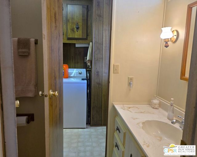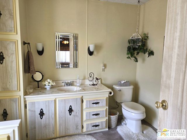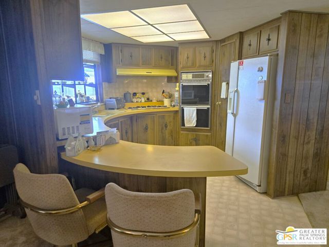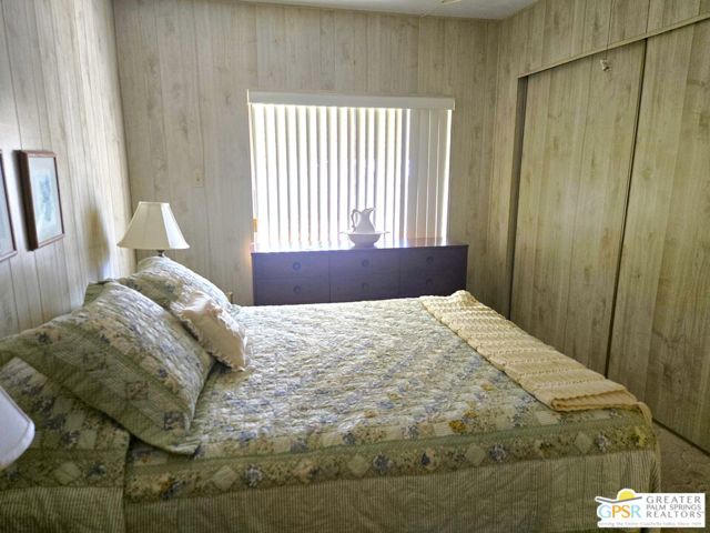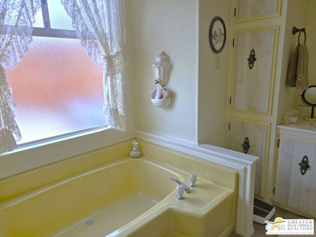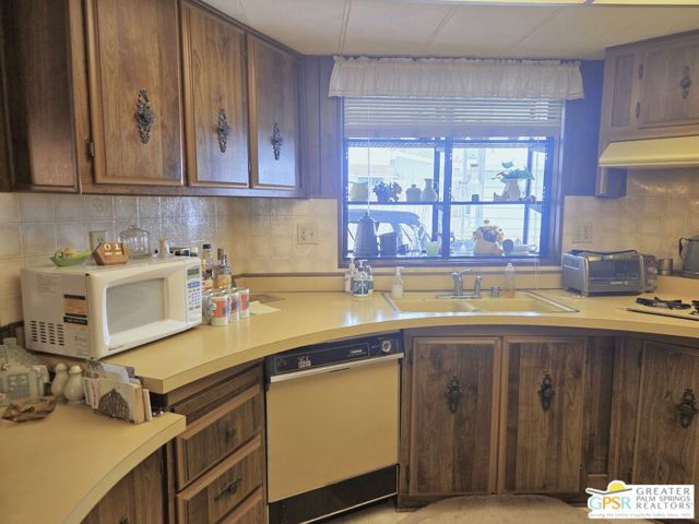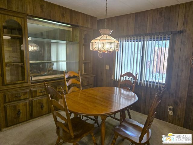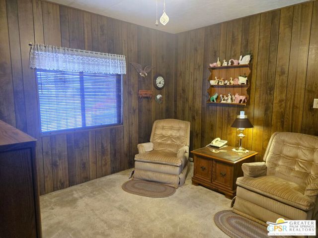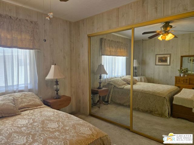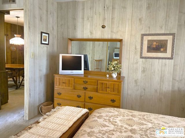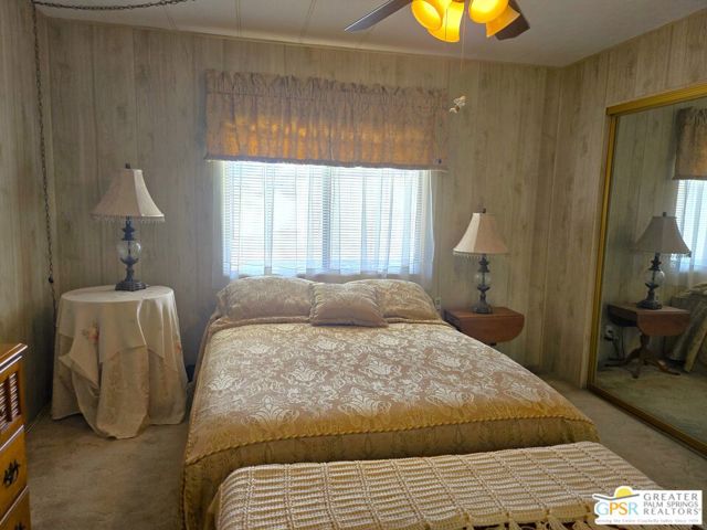 Nestled within the very lively and Active 55+ golf community of Desert Crest Country Club that is set in a beautiful rural setting, this one of a kind Three Bedroom and Two Bath, expansive 1690 Square Foot Manufactured Home built in 1978 offers a unique blend of comfort and convenience tailored for those seeking an active and vibrant 55+ lifestyle. Installed on one of the few oversized Lots in the community, the circular driveway and extra parking means you can have up to an RV here. Located in the heart of Desert Crest Country Club you are not far away from the huge Clubhouse, mineral spring water pool & several spas, and Par-3 golf facilities that are free to Owners, this home enjoys the perks of a quality lifestyle, surrounded by the scenic beauty of the desert landscape in the Western Coachella Valley. The Desert Crest Country Club community boasts a 9-hole PAr-3 golf course, inviting residents to enjoy leisurely rounds amid the picturesque setting of pond and mature trees that boast views of Mounts San Jacinto and San Gorgonio and the iconic windmills of the Banning Pass. This oasis extends beyond the golf course, offering a multitude of amenities enhancing your daily life. Residents here enjoy a multi-faceted Clubhouse featuring a healthy mineral water Pool and Spas, providing a serene escape and a hub for plenty of social connections. Indoor Shuffleboard and other activities are a welcome diversion here at the Clubhouse, with many interior facilities to keep you moving. The onsite cafe caters to culinary cravings for breakfast or lunch, the dog groomers attend to furry companions, and the real estate office ensures all needs are met with ease. These conveniences foster not just a residence but a sense of belonging within a home and community bound by shared experiences and vibrant camaraderie. At the center of it all you step inside this well-maintained home into a semi-formal Entry, and you'll discover its thoughtfully designed interior that includes a Living Room and Dining Area, Retro Circular Kitchen, and a separate Family Room. Three Bedrooms and two full Baths offer both comfort and functionality, catering to the needs of daily living within a spacious interior. The Master Bedroom stands as a serene haven, complete with a naturally lighted window that shows off the mirrored Closet Doors. Of special note is the Mid-Century Modern Kitchen that has a circled countertop space, Pantry, double Oven and oversized gas Cooktop. A Laundry Room inside the home completes what you need. All appliances are included too. You have a large Shed tucked away to the rear of the property in the Carport, an Outdoor Storage Space on the front side and ample parking with possible RV PARKING on the other side. The covered patio makes an inviting space designed for relaxation and entertainment. This is the ideal spot to revel in the beauty of the desert evenings, fostering moments of tranquility and social gatherings. The low maintenance xeriscape landscaping ensures that upkeep remains effortless, allowing you to focus on the joys of community living. This home represents a harmonious blend of comfort, style, and functionality, creating a delightfully private haven within the heart of Desert Crest Country Club. Whether indulging in a round of golf, luxuriating in the mineral water pool, or simply savoring the serenity of the surroundings from your very private rear deck, this property offers a unique and fulfilling 55+ living experience, where every moment resonates with the essence of a life well-lived.