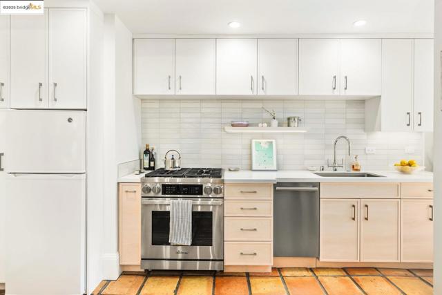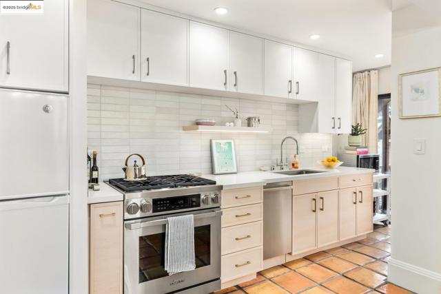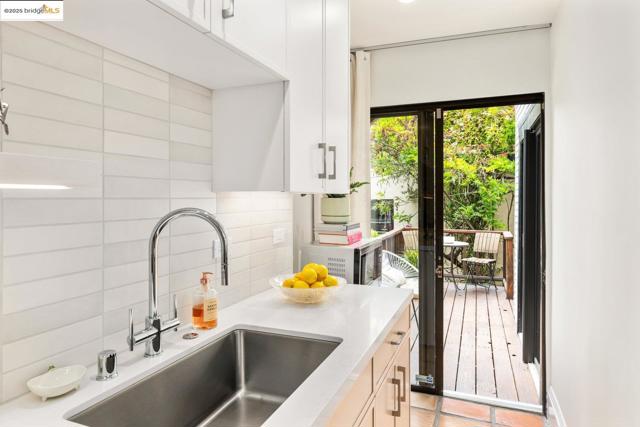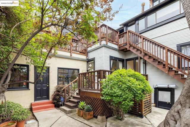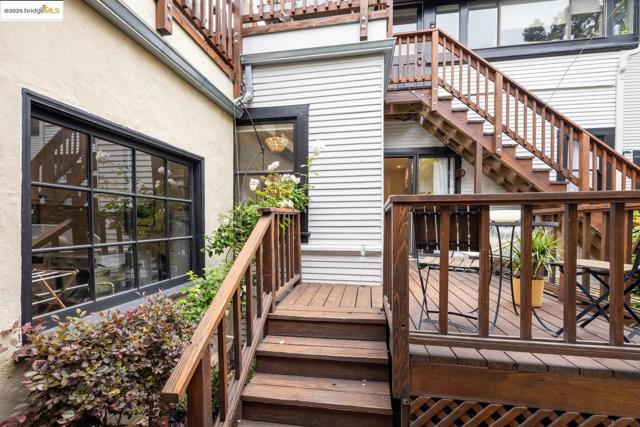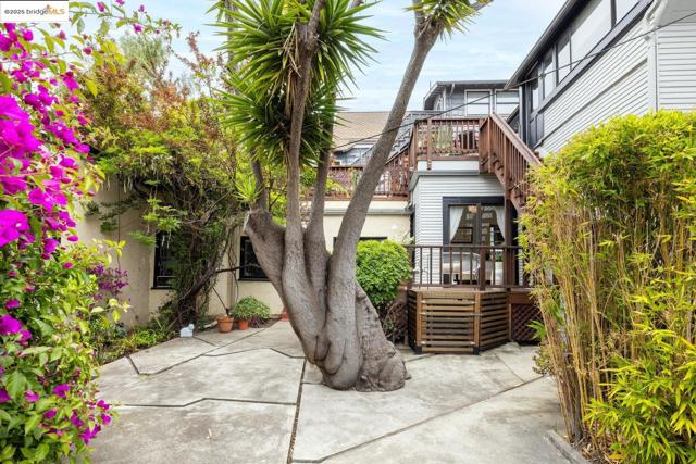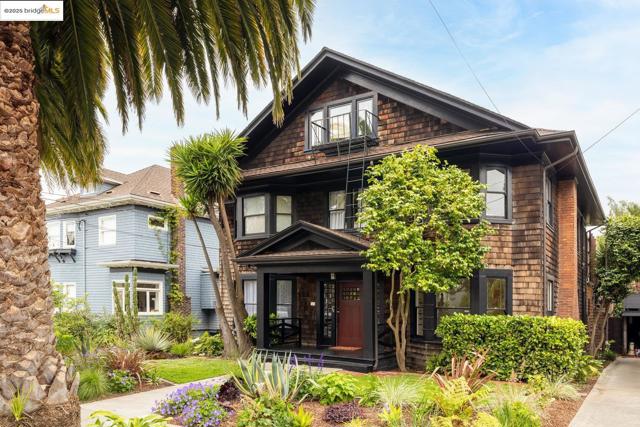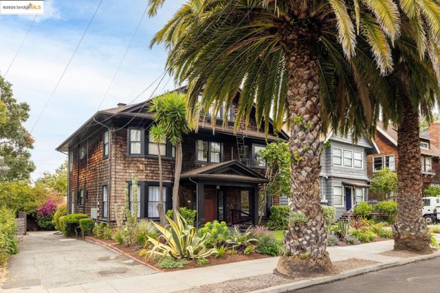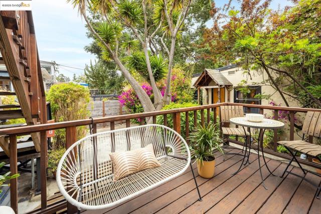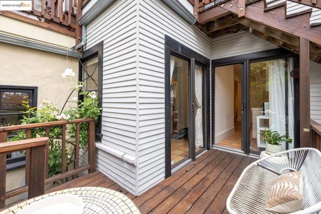 Nestled on a cozy treelined street in the historic Elmwood district, 2910 Hillegass Avenue offers comfort, charm, and convenience. A professionally landscaped garden and sprawling front porch welcome you to this classic brown shingle home – a hallmark of Berkeley’s rich architectural history. The building comprises 4 separate units, each with their own private deck and storage area. Inside, you’ll be charmed by high ceilings, original hardwood floors, and a row of bay windows providing ample natural light. The entire unit has been tastefully updated with modern comforts, including central air conditioning, upgraded furnace, new water heater (2023), and thoughtful soundproofing. The meticulously renovated kitchen includes custom soft-close cabinetry, painted ceramic tiles, and stone countertops. Saltillo floor tile provides warmth and character. The bathroom features Porcelanosa tiles, a concrete-topped custom vanity, and an extra-quiet exhaust fan. Sliding glass doors lead out to the sunny rear deck. Located in Berkeley’s sought after Elmwood district just minutes to College Avenue, UC campus, and Rockridge BART. With a neighborhood WalkScore® of 96, Elmwood provides easy access to an array of amenities. It is also conveniently situated near several beautiful nature spaces.