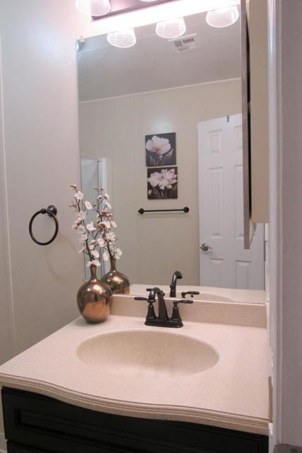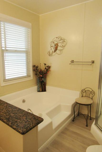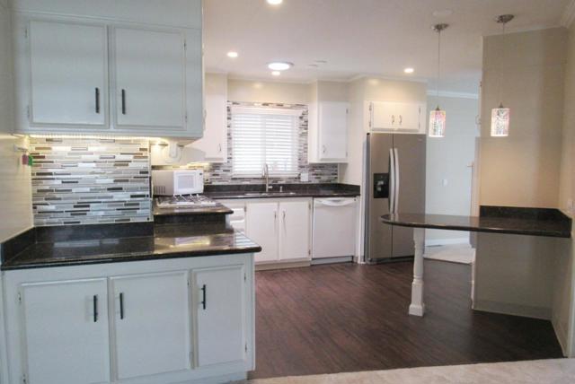 UPGRADES GALORE! In this spacious, freshly painted triple-wide, in a family park, you'll find luxury features such as upgraded wood siding/skirting, crown molding, ceiling fans, recessed lighting, central heat and A/C, & dual-pane windows for lots of natural light. Laminate flooring in the kitchen, laundry room, and bathrooms, and brand new soft beige carpeting throughout the rest of the home. One small room can be used for an office/den or a third bedroom. The updated kitchen features a breakfast bar, granite countertops, lots of cabinets with lighting, tile backsplash. It comes with all appliances, including a new fridge. Main bedroom offers a built-in dresser, mirrored closet doors, a private bath with dual vanities, granite counters, a soaking tub and a sizable walk-in shower. The Laundry room has a sink, a new washer/dryer, and extra storage. Enjoy quiet evenings or a morning cup of coffee on the spacious front porch. The backyard is a homeowner's dream to entertain, relax, or garden and a fenced-in yard for your special pet(s). 1975 Baron Vilsa S/N834X/U/XX