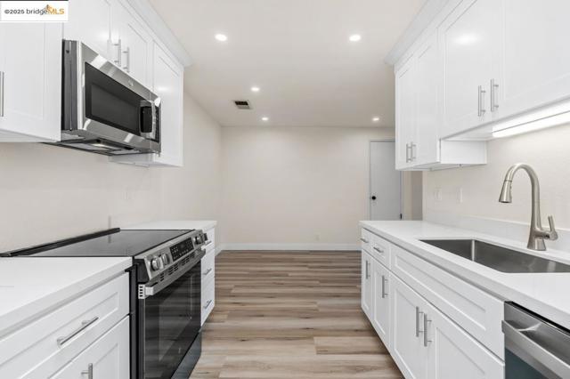 Fabulous Single Story End Unit Townhome. This home offers 2 bedrooms, and 2 baths with 1095 Sq ft. of living space. The kitchen is Remodeled with quartz counter tops, New stainless-steel appliances. Laminate flooring throughout. Bathrooms are remodeled with quartz counters and shower enclosure. Freshly painted. Open concept with Can lights throughout. Entertain with your newly low maintenance landscaped yard. This home has been remodeled. Close to Schools, Shopping and Freeway access. This home won't last long.