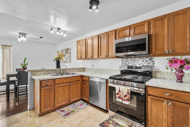 VA / FHA APPROVED townhouse. NEWLY IMPROVED READY TO MOVE IN !!! Charming 3-Bedroom Corner Unit in Bay Terraces. Welcome to 6872 Quebec Ct #5, a beautifully improved 3-bedroom, 2-bathroom condominium located in the peaceful cul-de-sac community of Bay Terraces in San Diego. This light-filled corner unit offers a rare combination of privacy, functionality, and thoughtful upgrades all just minutes from schools, shopping, parks, and major freeways. Step inside to discover a spacious, open-concept layout featuring laminate wood flooring in the living area, updated tile in the kitchen, back splash, new lightings , stainless appliances. Plush carpet in the stairs. Laminate flooring upstairs. The kitchen boasts granite countertops, modern cabinetry, and a convenient in-unit laundry area with washer/dryer hookups. Both bathrooms have been tastefully upgraded for a clean, modern feel. Enjoy the tranquility of having no neighbors directly in front, along with easy access to beautifully landscaped common areas, a community park, and tennis and basketball courts. This home includes one assigned carport space and ample guest parking. Situated near top-rated schools and just a short drive to downtown San Diego, this turnkey property offers both convenience and comfort in a highly desirable location. Don’t miss this incredible opportunity. Schedule your private tour today!!!!