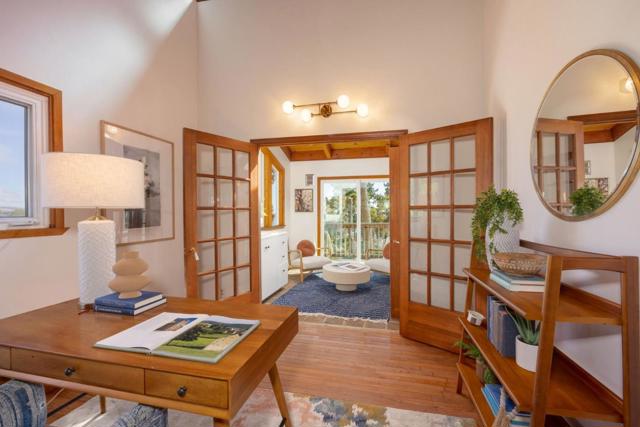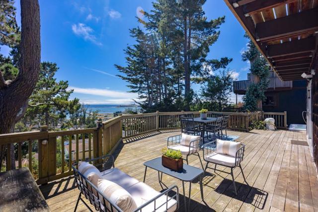$150K price adjustment on this custom Half Moon Bay home with sweeping ocean views! Perched above the harbor on a quiet El Granada cul-de-sac, this light-filled 4BR, 3BA retreat offers panoramic views of Mavericks surf break and open ocean. Natural materials and thoughtful design -- including open-beam ceilings and wood-clad accent walls -- create a sense of warmth and comfort, while expansive windows invite the seascape into nearly every room. The spacious living room opens to a large view deck, perfect for entertaining or relaxing in the jacuzzi at sunset. The open kitchen connects seamlessly to the dining and living areas -- ideal for gatherings and everyday living. The main level also features a junior suite with ocean views, plus a guest bedroom and full bath for added flexibility. Upstairs, the primary suite includes a vaulted-ceiling, fireplace, walk-in closet, and ensuite bath with rare Koa wood vanities and mirrors sourced from Hawaii. A 4th bedroom with built-ins currently serves as an office, flowing into a sunroom bathed in natural light and framed by panoramic views. Outside, raised garden beds and a charming chicken coop add a touch of homestead charm. Just moments from Quarry Park, the Coastal Trail, and the beach, this is the relaxed coastal lifestyle -- elevated.