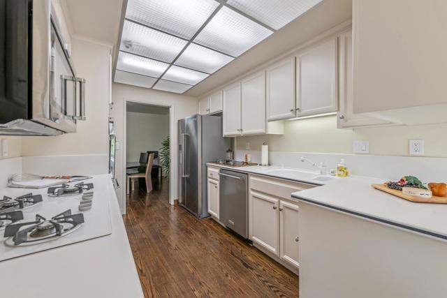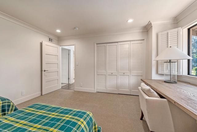 Bordering the 10th hole at Sharon Heights Golf and Country Club, this end-unit townhome offers fairway and wooded views in a private setting at the front of the community. Soaring ceilings and dramatic walls of glass create a light-filled ambiance throughout the multi-level floor plan with 3 bedrooms, including a top-floor primary suite with open sitting room and private deck. Spacious living room with fireplace, formal dining room, and all-white eat-in kitchen opening to a wraparound low-maintenance yard. EV charging, remote-controlled blinds, keyless entry, and a separate laundry room. Community pools, spas, and private event space, all minutes to Sharon Heights Golf and Country Club, Rosewood Hotel, Sand Hill Road venture capital centers, and Stanford University. Excellent Las Lomitas schools.