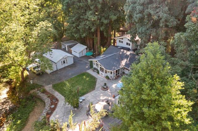 Sunlit Scotts Valley Retreat w/ Guest Cottage! Seller concessions up to $34,000 to buy rate down for Buyer, equivalent to a huge price reduction. 10 minutes from the shops, dining in Scotts Valley & Highway 17, This property blends privacy and country charm,. surrounded by trees and bathed in natural light, 4 bed/ 2 bath, with large master suite, private bath, deck & entrance, offering a quiet retreat with tranquil views. The downstairs is designed for comfort and function, with a bright great room, cozy family room, full bathroom, laundry room, and a warm kitchen that flows naturally for gatherings or everyday living. A detached 1-bedroom, 1-bath guest cottage sits just steps away perfect for hosting extended family, creating a private office, or generating rental income with washer/dryer hooks ups! The grounds are as functional as they are scenic, featuring large creek frontage, two-car garage, 2 custom-built sheds, a carport with added storage, and a wrap-around driveway for easy access and guest parking. An upper gated driveway offers room for an RV, boat, or multiple vehicles, and two more storage units. This one-of-a-kind property offers a rare combination of seclusion and convenience, with abundant sunlight, multiple living options, and a peaceful natural setting.