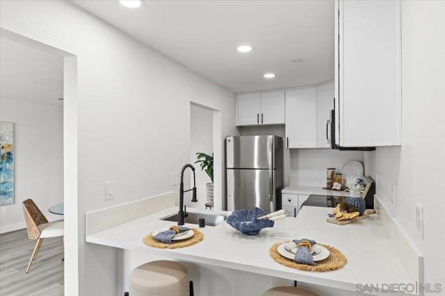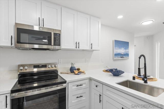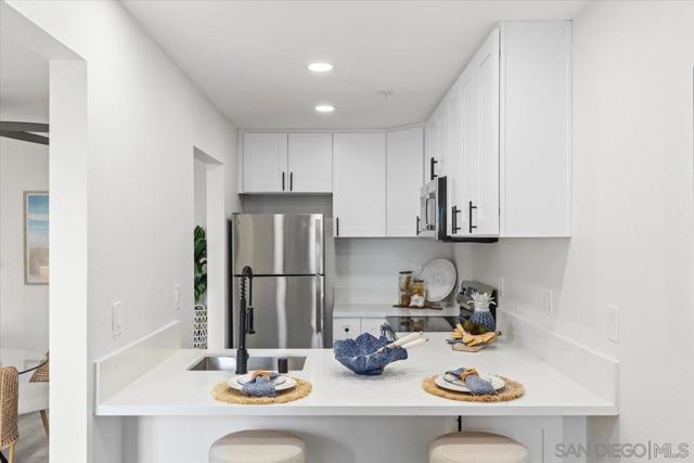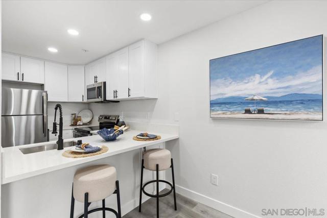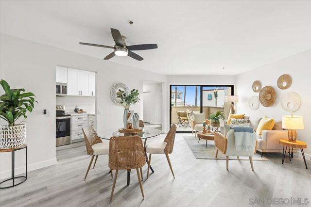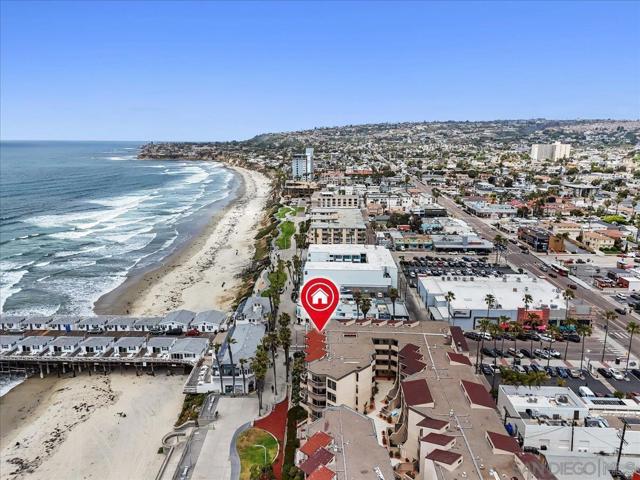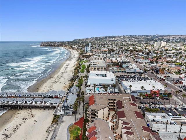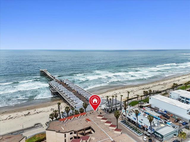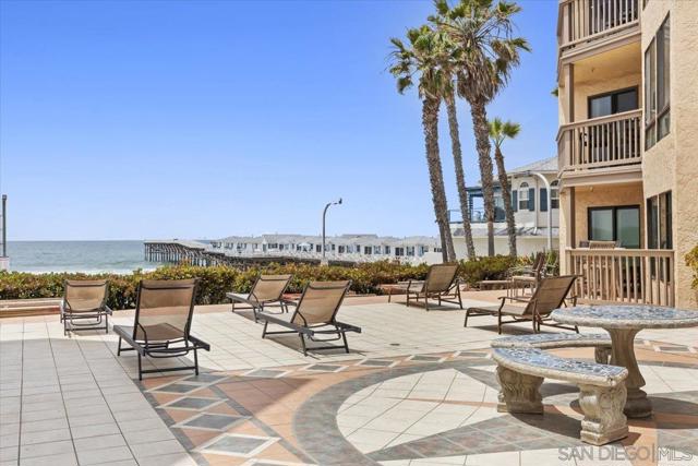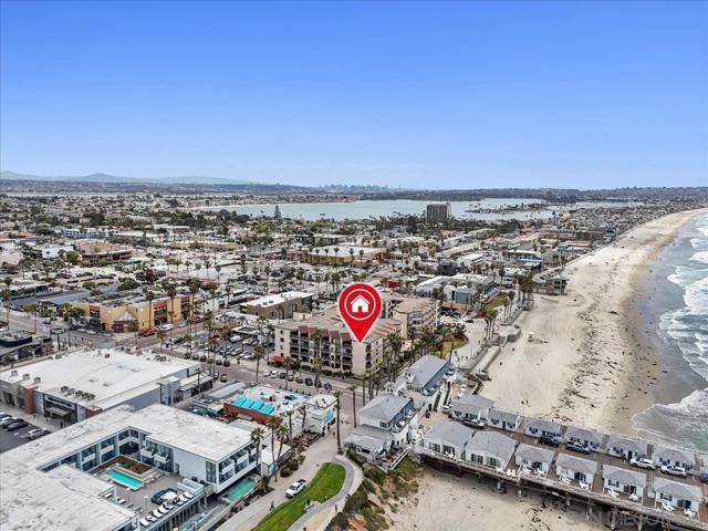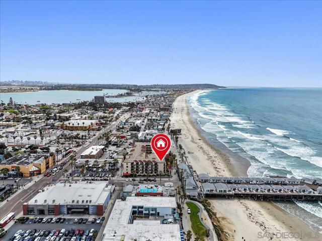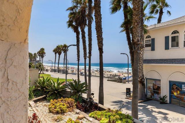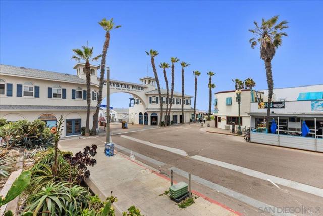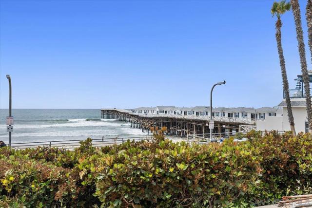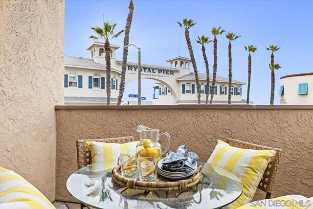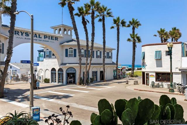 Location, location, location! Turnkey ocean-view condo in a prime Pacific Beach location just steps to the sand, boardwalk, shops, and top restaurants. This 1-bedroom, 1-bath unit lives large with an open layout and space in the living room to add a Murphy bed. Enjoy ocean and Crystal Pier views from both the living room and bedroom, plus a private balcony and an expansive front patio perfect for indoor-outdoor living. Fully updated and eligible for minimum 7-day vacation rentals—ideal for short-term income or a personal beach getaway. Includes secure parking, private storage locker, and access to a community spa and ocean-view sun deck.