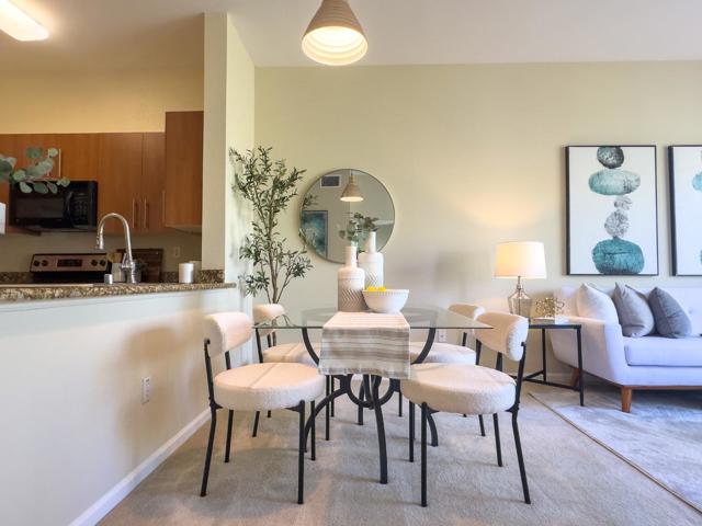 Fully remodeled top-floor corner unit in a secure, resort-style community just minutes from Downtown San Jose, SJSU, and major freeways. This home boasts one of the best locations in the complex, tucked away at the back for added privacy, with abundant natural light and scenic views of the greenbelt, pool, and walking paths. The 1-bedroom, 1-bathroom layout features soaring ceilings, a fully updated kitchen and bathroom, large windows, and convenient in-unit laundry. Enjoy a spacious interior closet along with a private storage room located just outside the unit on the balcony. Community amenities include a controlled-access building with a secured garage and mailroom, sparkling pool and spa, fully equipped gym, game room with billiards, BBQ area, event and conference rooms, and beautifully landscaped grounds with walking paths. HOA dues cover water/sewer, and trash for added convenience. This property is a fantastic opportunity for investors or owner-occupants alike. Live or invest in style, this turnkey condo offers the perfect combination of comfort, convenience, and resort-style living.