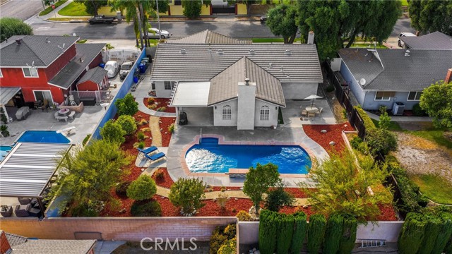 Welcome to 1508 Shamrock, a beautifully updated 5 bedroom, 2 bathroom single-story home offering over 2,000 sq. ft. of living space on an expansive 10,000+ sq. ft. lot. The remodeled beautiful kitchen has ample counter space, a coffered ceiling, stainless steel appliances, custom cabinets, recessed lighting and opens to a spacious family room. The family room is large and inviting with a brick fireplace and windows placed perfectly to view the serene backyard—perfect for entertaining. Thoughtful upgrades have been completed throughout the years, including a remodeled kitchen (2005), refreshed bathrooms (2014), new pool (2016), simple and easy to care for backyard (2017) roof repapered and re-tiled (2016), AC replacement (2016), and a new water heater (2021). With generous living areas, modernized features, and a layout designed for both comfort and function, this home is truly move-in ready. Enjoy the ease of single-story living—no stairs, no solar to assume, simple yard to maintain, just effortless comfort in a highly desirable neighborhood. Easy access to shopping and commuter friendly. Don't miss out!