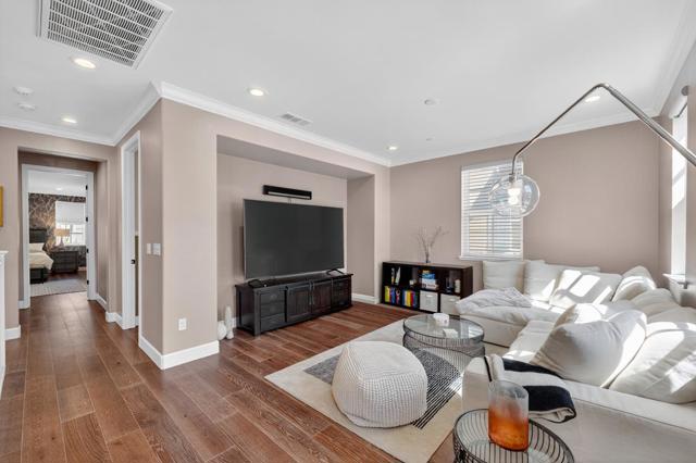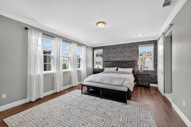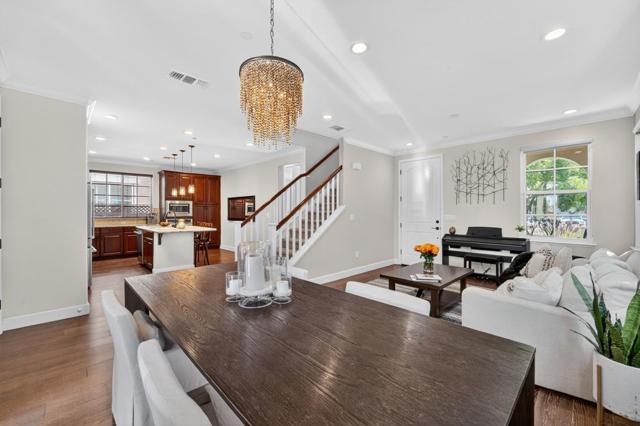 Stunning detached SFR home in the European-inspired Santina community in Los Gatos, featuring soaring high ceilings and elegant design. Purchased from the builder with over $97K in premium upgrades and thoughtfully enhanced by the current owners. The gourmet kitchen offers upgraded cabinetry with custom glaze, Café stainless steel appliances, granite countertops, custom backsplash, and under-cabinet lighting. Wide-plank oak hardwood floors, crown molding, upgraded tile and stone baths, and plantation shutters add to the refined style. Last sale for this model...$2,444,000...This is a great price Owner improvements include a ground-floor wine room, custom cabinetry in the primary closet and garage, 60A Level 2 EV charger, backyard paver patio, Nest-controlled dual-zone heating and AC, and professionally installed solar panels (owned). With designer finishes, a landscaped patio for entertaining, and a prime Los Gatos location near Bay Club Courtside, Rinconada CC, and top-rated schools, this home offers style, function, and quality in every detail. The versatile floor plan also includes a DOWNSTAIRS BEDROOM with a full bath, offering comfort and privacy for visiting guests.