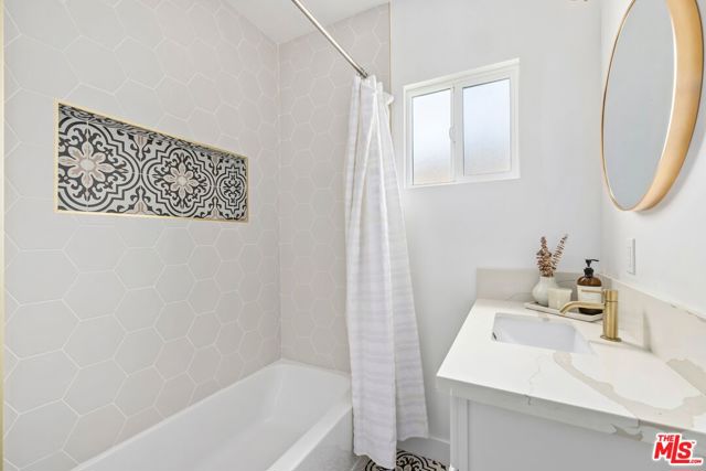 Welcome to a charming original 1920s Spanish, extensively remodeled throughout with modern finishes and set back from the street with a grassy lawn and drought-tolerant landscaping. Pass the front porch and enter through a character-rich wooden door, complete with a speakeasy window, to discover an open-concept floor plan perfect for entertaining. The bright, light-filled living room flows into the adjacent dining area which continues to the kitchen, updated with beautiful quartz countertops, center island with farm sink, stainless-steel appliances, and new hardware. The primary bedroom is spacious, and its en-suite bathroom is appointed with stylish tiling and a dual-sink vanity. Secondary bedrooms are also filled with light, one of which is currently used as an office, and stackable laundry is positioned central to the living spaces. Outside, enjoy a large backyard with grassy play space plus a trellis-covered outdoor dining room for savoring evening meals and afternoon drinks. For the creative artist, there is even a converted and detached music studio, fitted with acoustic treatments! Or, the possibilities are endless to easily reconfigure this bonus space for yoga, meditation, gaming, study, remote work, or anything imaginable. There is ample street parking as well as room for multiple cars in the long gated driveway. Welcome to this excellent location near parks, schools, houses of worship, and freeways, just moments to LA icons like the Forum, SoFi Stadium, LAX, and more.