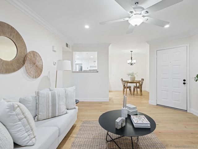 Welcome to this picture perfect condo in an amenity rich community close to the 15 fwy! Beautiful newer Vinyl flooring throughout offers seamless spaces that make the unit feel very spacious. Upgraded kitchen includes new slab counters and upgraded appliances. The bathroom is reimagined with newer slab counters and newly tiled shower. Laundry room with full size laundry is in the unit for convenience. A private balcony off of the living room allows for al fresco dining year around and the community's pool, spa, tennis and clubhouse can keep you entertained!