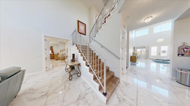 Welcome to your new dream home in the heart of beautiful Rancho San Diego. This stunning new construction, built in 2023, is a masterpiece of modern design and thoughtful engineering. The extensive grading of the potential lot has resulted in a spectacular, elevated setting with breathtaking views. Step inside and be prepared to be wowed by the grand 22-foot high ceilings, creating an expansive and luxurious feel throughout. The entire home is laid with beautiful tile flooring, offering a sleek, clean look and exceptional durability. The main floor features a private, downstairs master suite, complete with a lavish en-suite bathroom that serves as your own personal sanctuary. This home seamlessly blends legacy craftsmanship with cutting-edge, modern features, including a dedicated upstairs laundry unit for ultimate convenience. To top it all off, the fully owned and paid-off solar system ensures a life of sustainable luxury, with minimal energy costs and maximum peace of mind. This is more than just a home; it's a statement of style and a testament to quality in one of the area's most beautiful and sought-after communities.