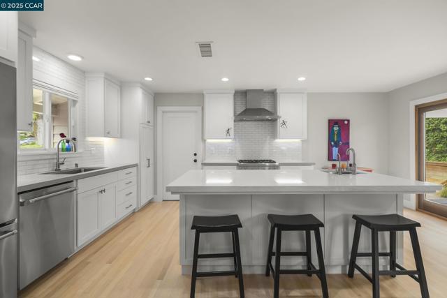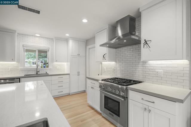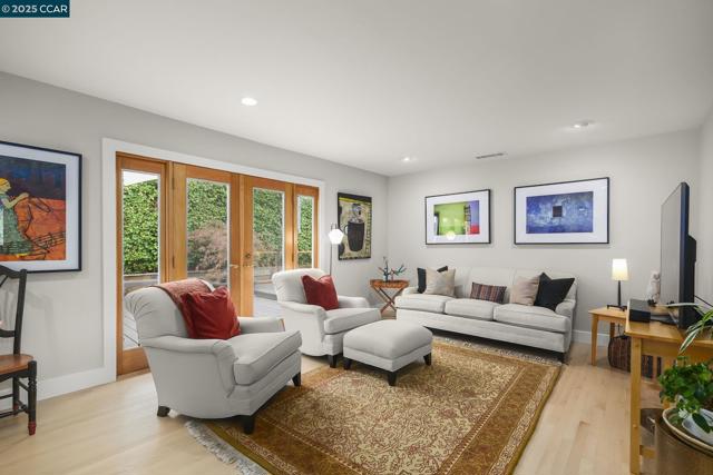NOT TO BE MISSED! This absolutely stunning home offers refined living with exceptional privacy, views, and timeless updates. A spacious open great room is the heart of the home, featuring a chef’s kitchen with Thermador gas range, Bosch built-in microwave, prep-sink, island and elegant white shaker cabinetry, all bathed in natural light from expansive Pella French doors. Wood floors throughout (except baths), smooth interior walls, and tastefully renovated bathrooms showcase quality craftsmanship, while the primary suite with retreat/office provides a serene escape. Perfect for entertaining, the freshly stained backyard deck frames tranquil vistas. This home has been meticulously maintained by the long-time owner to ensure lasting beauty and function. Even the fire-hardening has been completed. Ideally located near award-winning Lafayette schools (1.8 mile to Burton Valley; 1.1 mile to Stanley Middle, and 3.7 miles to Acalanes High), town, scenic trails, freeway access, and just 1.8 miles from Lafayette BART, this home combines luxury, convenience, and sophistication.