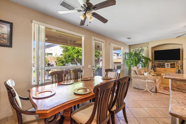 PRICE IMPROVEMENT!! Beautiful Home in LAS COLINAS gated community with Low HOA! This Fantastic Property offers: private courtyard entry, 3 bedrooms, 2 bathrooms. Great potential to add an extra bedroom & bath. 2 car garage, formal dining room, family room with fireplace, spacious kitchen with granite counter tops, pantry and breakfast bar. Tile flooring throughout the house. Large master bedroom with walk-in closet and direct access to the backyard. Master bathroom with dual sinks, walk-in tub and upgraded shower. Guest bathroom with dual sinks & upgraded shower. Big & relaxing backyard with covered patio and fruit trees. Excellent location just minutes away from I-10 FWY and HWY 111. and close distance to The Polo Fields, Tennis Garden, and Casinos. Do not mis out this great opportunity!! Call today to schedule a tour of this amazing home!!