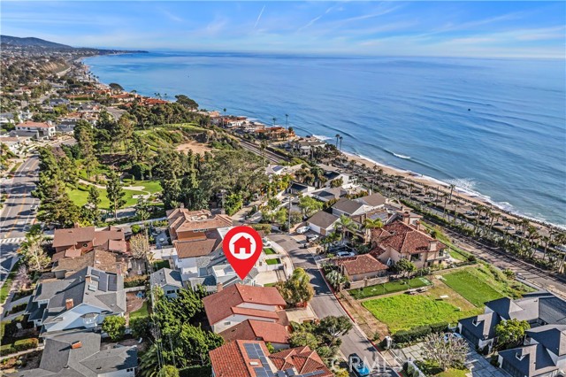 Welcome to an exceptional opportunity in the heart of Capistrano Beach, ideally situated on the most coveted street in the neighborhood — Doheny Place. Positioned across from the only vacant lot on the street and surrounded by prestigious bluff-top homes, this location is truly unmatched. Just steps away, enjoy direct access to the scenic beauty of Pines Park, a historic bluff-top gem overlooking the Pacific. This two-story home offers stunning ocean views that greet you from the front door and extend all the way to the private deck off the upstairs primary bedroom. Upon entry, a step-down living room sits to the left, seamlessly flowing into a formal dining room with convenient access to the kitchen with a eating area and access to the backyard. Continuing straight ahead, you’ll find a step-down hallway leading to a laundry closet, full bathroom, and an inviting family room complete with a fireplace, wet bar and additional kitchen and backyard access — ideal for entertaining. Upstairs features a spacious landing, three generously sized bedrooms, and two full bathrooms. The flexible floor plan offers endless possibilities to reimagine and customize the space to suit your vision. The backyard provides a serene and private retreat, surrounded by mature, lush trees. An attached two-car garage adds convenience, while the home’s prime location south of the 5 Freeway places you just minutes from beaches, parks, grocery stores, shopping, and dining.