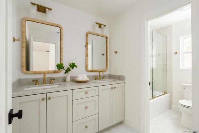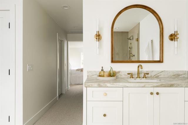 Fully Renovated Coastal Gem with Detached Casita! Where modern luxury meets coastal charm. This just-completed, top-to-bottom renovation has transformed every inch of the home and yard. No detail was overlooked! 5 Bedrooms | 3 Bathrooms | Detached Casita | Spacious Layout Interior Features: Brand-new kitchen with custom cabinetry, designer hood, quartz countertops, and high-end appliances. All-new bathrooms with custom vanities, quartz counters, premium Kohler fixtures, and designer tilework. Primary suite with two new fully built-out custom closets. Luxury real hardwood flooring throughout main living areas; new plush carpet in bedrooms. Freshly smoothed and painted walls inside and out. Oversized laundry room with new cabinetry and tile. Detached Casita: Ideal for home office, guest suite, gym, or studio. Exterior Features: Completely private backyard with lush landscaping. New built-in BBQ island with gas grill—perfect for entertaining. All-new landscaping in front and back with sod, plants, trees, and new sprinkler systems. Location: Quiet cul-de-sac in a serene, family-friendly neighborhood. Just 5 minutes to I-5, 7 minutes to the beach, and 7 minutes to Carlsbad High School and other top-rated schools. Everything is brand new. Move-in ready. A true turnkey opportunity in Carlsbad!