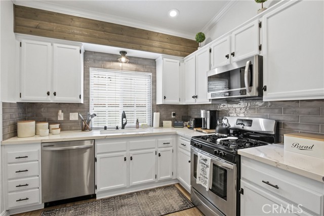 Chino Hills Charmer — First time on the market and ready for you to call it home. This single-story remodel sits on a premier, family-friendly street just steps from Los Serranos Country Club. With 3 bedrooms, 2 baths, and 1,192 sq ft of stylish living space, this home shines from curb to kitchen. Highlights include a bright, open living area with a cozy stone fireplace and a chef-ready kitchen featuring a gas range, stainless dishwasher, and a generous pantry. The primary suite offers dual vanities and direct backyard access. Upgrades abound, including high ceilings, recessed lighting, white shutters, a new front entry double door with glass, double-pane windows, luxury flooring, crown molding throughout, quartz countertops, updated cabinetry, and fresh paint throughout, making this property truly turnkey. Located in the top-rated Chino Valley Unified School District with Chaparral Elementary nearby, this family-friendly neighborhood provides easy access to the 60, 71, and 91 freeways. Don’t miss your chance to own in one of Chino Hills’ most desirable areas.