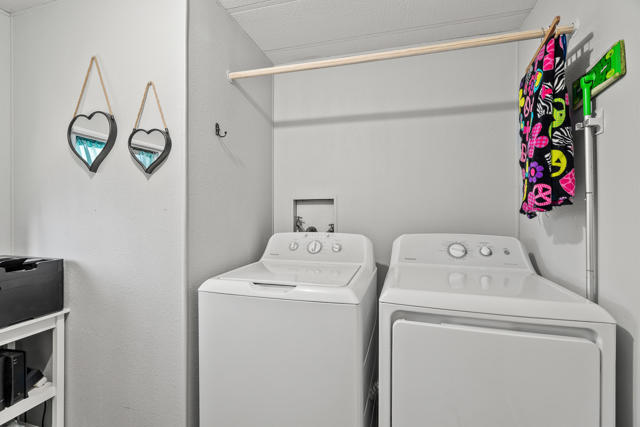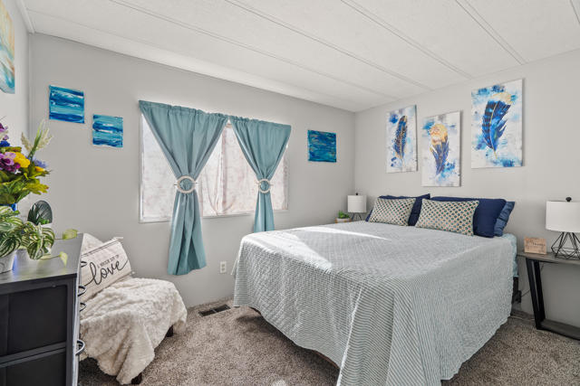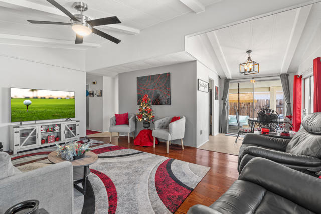This beautifully, 'FULLY FURNISHED, TURNKEY, READY TO MOVE IN!' remodeled 2-bedroom, 1-bathroom home in a sought-after 55+ community offers comfort and style, with no detail overlooked. From the moment you walk in, you'll be impressed by the thoughtful updates and beautiful turnkey furnishings throughout.The spacious interior features an oversized laundry room, perfect for extra storage space, or with the potential to convert it into a second bathroom. The detached 2-car garage provides additional convenience and room for your vehicles.Step outside to the gracious patio, designed for ultimate relaxation and enjoyment. Whether you're spending a quiet evening alone, hosting friends, or having family gatherings, you'll love the inviting fire table, BBQ area, and outdoor furniture. It's the perfect space for unwinding or entertaining.Additional highlights include sun screens on all windows for added energy efficiency and privacy, Ring spotlight security camera, plus the home comes with a 433A certification. The community offers RV parking option for residents, two pools with hot tubs, clubhouse, sport court and lush areas to enjoy adding even more convenience to this fantastic location.This home is truly a gem--ready for you to move in and enjoy all that this vibrant community has to offer!