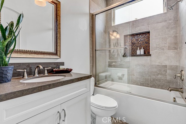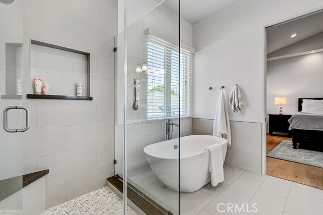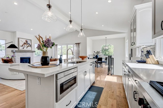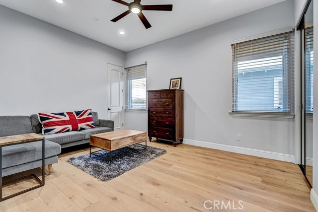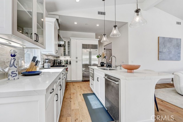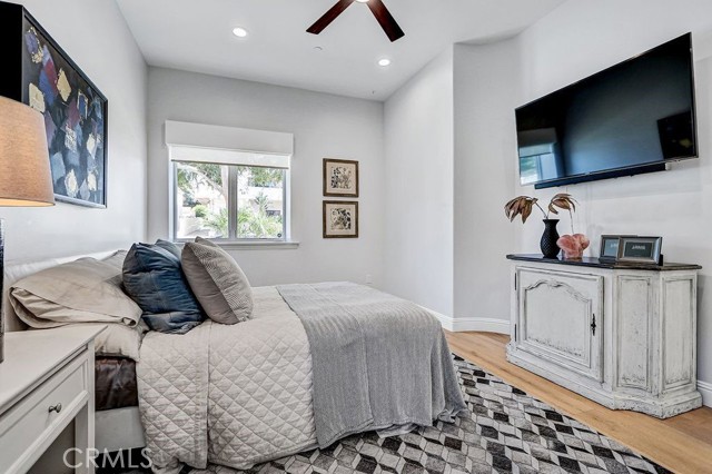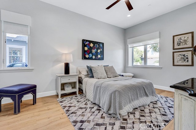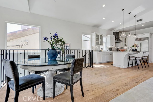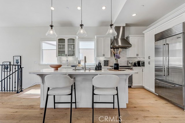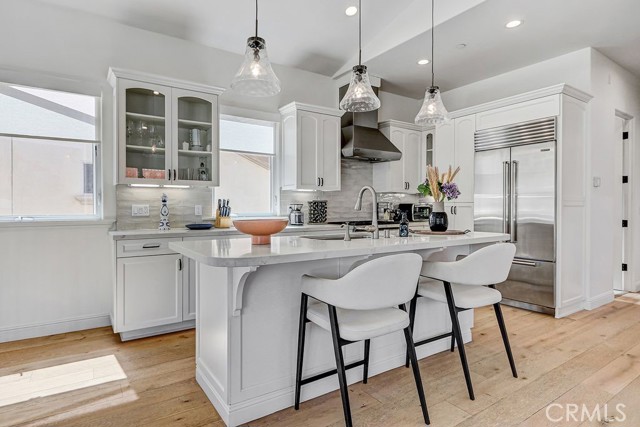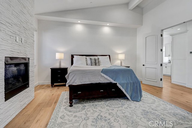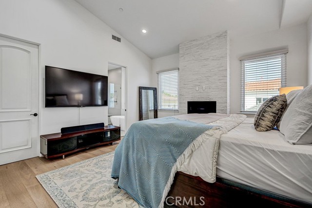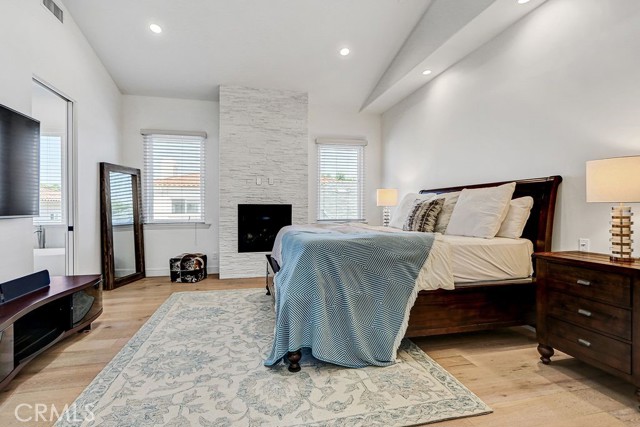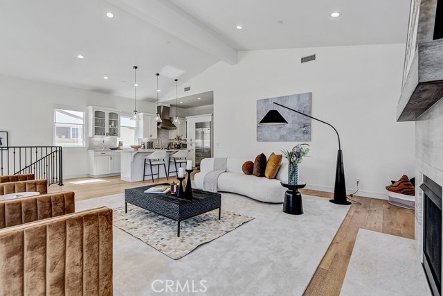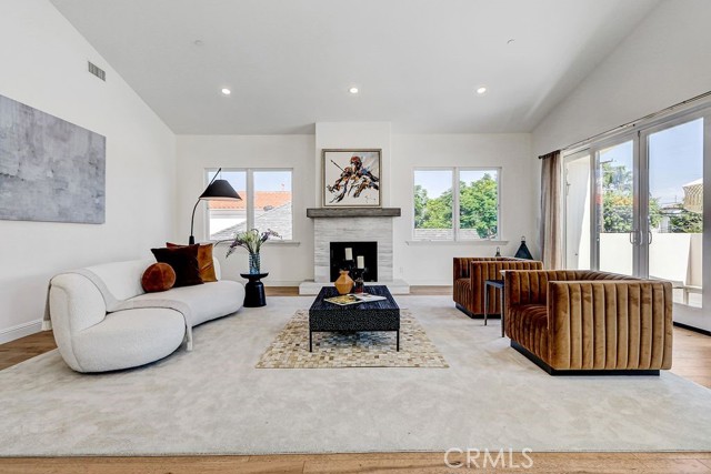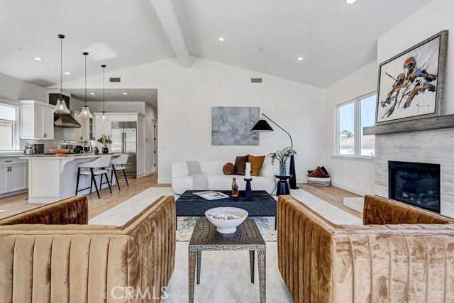 Tucked away on a serene, tree-lined street in South Redondo, 105 S Juanita Ave blends coastal living with refined design in a detached Mediterranean-style townhome that offers the privacy and comfort of a single-family home. Located just minutes from the beach, this custom-built residence by Dennis La Charite Construction (2017) with 4 bedrooms, 3 bathrooms, and a thoughtfully designed layout filled with premium finishes. The upper level welcomes you into an expansive great room where vaulted ceilings, wide-plank oak flooring, and an abundance of natural light create an open, airy atmosphere. A spacious tiled deck—complete with a built-in gas line—extends seamlessly from the living area, ideal for indoor-outdoor living. The chef’s kitchen features Quartz countertops, high-end Wolf and Sub-Zero appliances, custom cabinetry, and a large center island with bar seating. A granite-faced fireplace serves as a cozy focal point in the adjacent living and dining areas. The primary suite is a luxurious sanctuary with vaulted ceilings, a stone-accented fireplace, custom walk-in closet, and a spa-like bathroom featuring dual vanities, a walk-in shower, and a freestanding soaking tub. Also on the upper floor are a dedicated office space and a second full bathroom. Downstairs, two spacious bedrooms share a well-appointed bathroom with dual sinks. This level also includes a laundry room and direct access to a finished two-car garage with epoxy flooring and storage space. Located near top-rated schools, local parks, boutique shopping, and the iconic South Bay coastline, 105 S Juanita Ave offers a harmonious blend of luxury, comfort, and beachside convenience.
