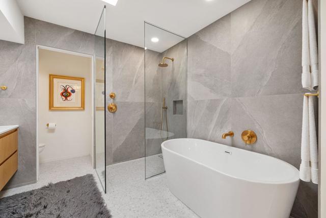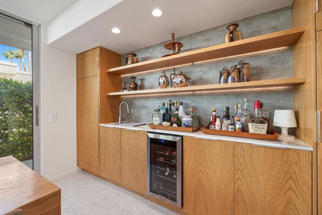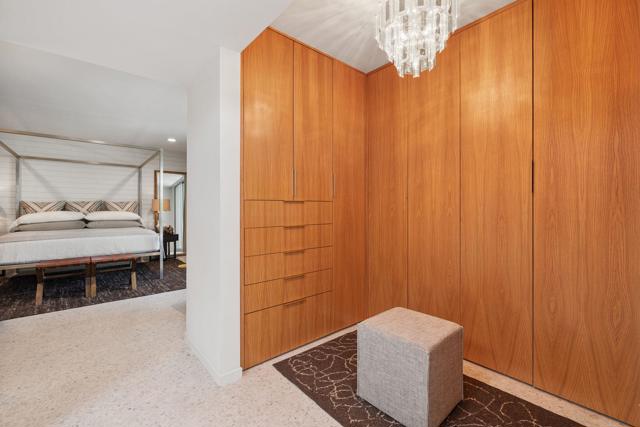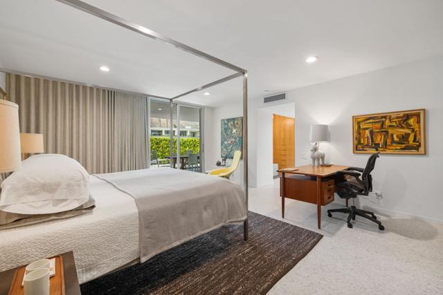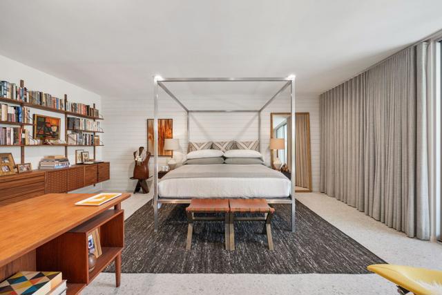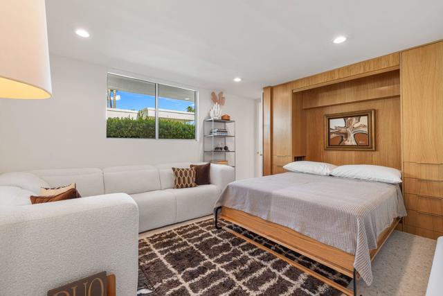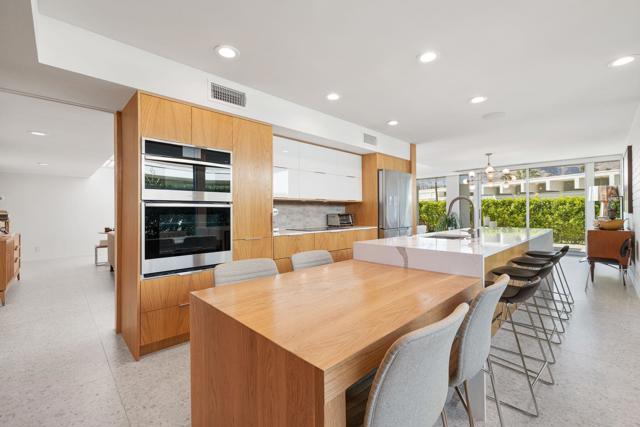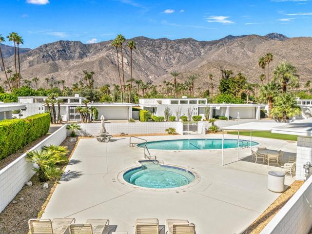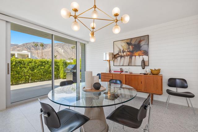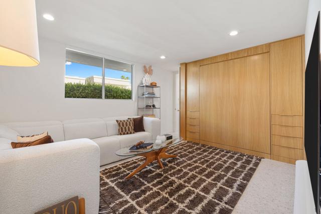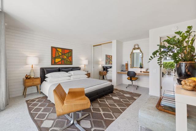 Set within the iconic Kings Point mid-century modern community of just 44 residences, designed by renowned architect William Krisel, homes in this exclusive South Palm Springs enclave are rarely available. Stunning and timeless, this home was completely remodeled and thoughtfully reimagined in 2024. It showcases iconic mid-century lines, high ceilings with clerestory windows, and seamless indoor-outdoor flow. The open-concept great room features walls of glass framing stunning mountain views, while the chef's kitchen boasts white oak cabinetry, quartz countertops, and premium appliances. The spacious primary suite offers a private retreat with direct patio access, a spa-like bathroom, and dressing room with custom wood cabinetry. Two additional en-suite bedrooms provide flexibility for guests or media space. Designed for entertaining, the home opens to a private patio with fire pit, BBQ, and inviting lounge area. Additional highlights include designer drapes, remote-control shades, Sonos sound system, custom fireplace, new flooring, 240v car outlet, and tankless water heater. Residents also enjoy tennis courts and two pools and spas, just steps away. Every detail of this home has been elevated, making this Krisel gem both architecturally significant and move-in ready.