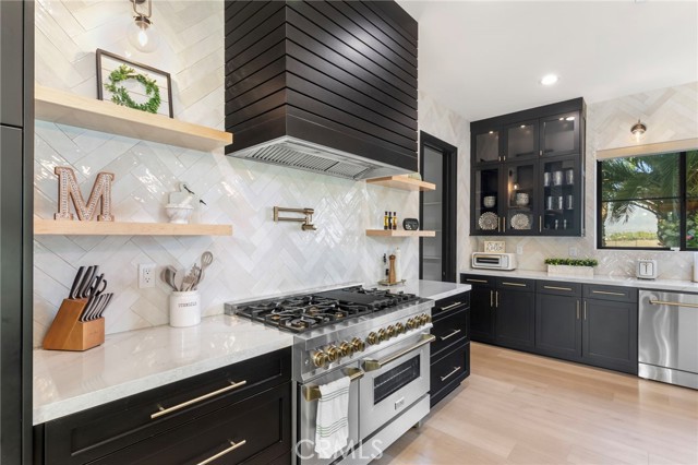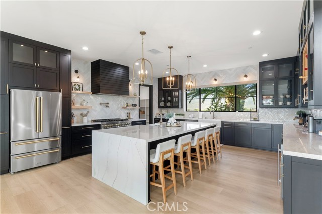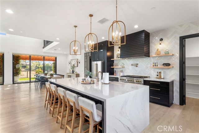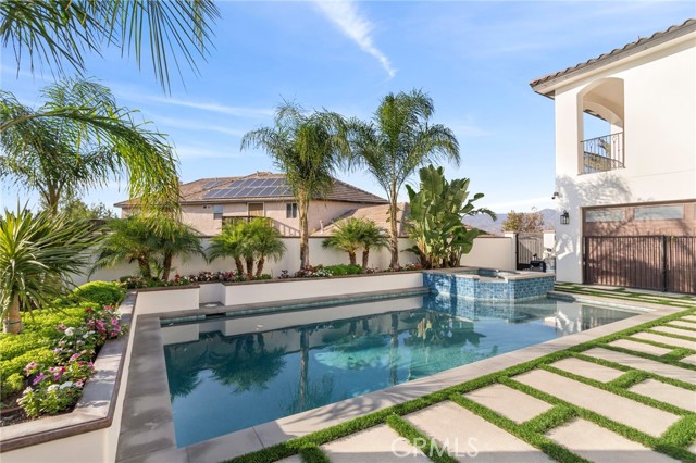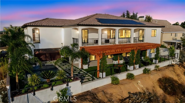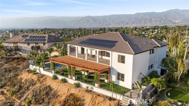 Experience refined California living in this exquisite estate with over 4,600 sq. ft. on nearly half an acre. Inside, soaring 9-ft doors, an expansive living room, upstairs loft, and a chef’s kitchen with a pot filler faucet, wine fridge, and under-cabinet lighting set the stage. A dramatic 30-ft wall of glass opens the home entirely to the backyard, creating seamless indoor-outdoor living. Unique details include motorized blinds, a secret liquor-display door with hidden storage, dual AC systems, and a master suite with its own alarm panel. Outdoors, enjoy a sparkling pool, wrap-around porch, $300,000 in lush landscaping, and panoramic 360° views. With 5 bedrooms, 6 baths, a double-door garage, and paid 10,000-watt solar, this estate blends luxury, comfort, and innovation.