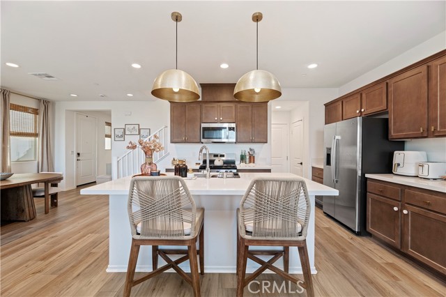 Shows like a Model Home and thoughtfully upgraded throughout, it’s a must-see. Inside, you’ll find a kitchen where creativity and connection come to life. Designed for the chef at heart and for the host who loves to gather family and friends, every detail invites warmth and togetherness. From the spacious countertops perfect for holiday baking to the open layout that keeps everyone part of the conversation, this is where memories are made. Whether you’re serving up your signature dish or sharing laughter over morning coffee, this kitchen is the heart of the home. The main living area features luxurious vinyl plank flooring and a newly built fireplace. Upstairs, in addition to the three bedrooms, the loft offers the perfect retreat with plenty of room to relax and unwind. The beautifully landscaped backyard is designed for entertaining. It's ideal for gatherings, barbecues, or simply enjoying the outdoors. Plus, with no neighbors behind, you’ll enjoy added privacy and peaceful views. All of this is located in a thriving community with a low HOA, where residents enjoy a resort-style clubhouse and top-tier amenities that truly elevate your lifestyle. Don’t miss your chance to be among the first to tour this beautiful home.