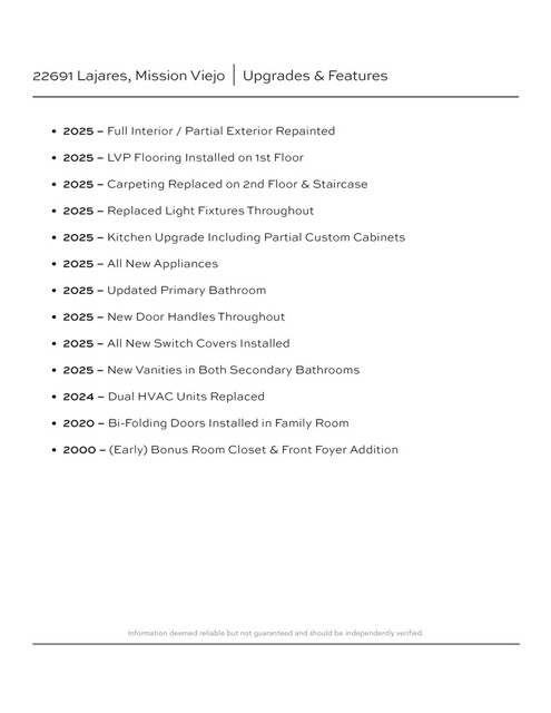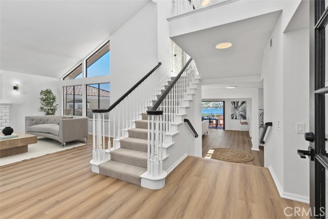 Stunning PANORAMIC LAKE VIEWS from just about EVERY room! This recently updated Ventana model showcases 4 bedrooms, 3 baths, an EXPANSIVE loft/bonus room, and approximately 3,347 sq. ft. of LIGHT-FILLED, MODERN living. Perfectly situated on an elevated corner lot at the end of a cul-de-sac on a single-loaded street, this home offers unobstructed VIEWS of Lake Mission from end to end. The SPACIOUS floor plan welcomes you with soaring ceilings, an impressive entry foyer, formal living room, main floor bedroom with full bath, and convenient laundry room. Step down to the formal dining room, or enjoy the newly upgraded kitchen with STAINLESS STEEL appliances, QUARTZ counters, partial custom cabinetry, breakfast nook, and captivating LAKE VIEWS. The adjoining family room with BI-FOLDING glass doors creates seamless Indoor/Outdoor living. Upstairs, the primary suite boasts VAULTED ceilings, a SPA-inspired bath, and French doors leading to a private balcony with breathtaking VIEWS. Two additional bedrooms and a large bonus room with closet (optional 5th bedroom) share a full bath with dual sinks. Recent upgrades include new carpet & luxury vinyl flooring, full interior paint, partial exterior paint, updated hardware, light fixtures, and more over $15OK in improvements! The freshly landscaped backyard on an 8,400 sq. ft. lot is ideal for entertaining or unwinding while enjoying sunrise and sunset views over the LAKE. Residents enjoy Lake Mission Viejo's exclusive amenities including beaches, clubhouse, boat rentals, concerts, holiday activities, and more all just a short walk away. This is a RARE opportunity to own one of Andalusia's most picturesque, unobstructed LAKE-VIEW HOMES. Schedule your showing today!