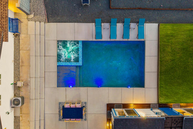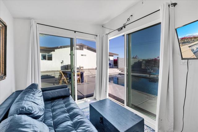 Your private desert playground awaits. Set on nearly half-acre, this fully refreshed retreat is move-in ready so you can start living the dream. The showpiece is the saltwater pool and spa, surrounded by unobstructed San Jacinto and San Gorgonio Mountain views; perfect for sun-soaked afternoons, golden-hour swims, and starlit dips. Designed for entertaining, the backyard features an outdoor kitchen for sunset dinners, an outdoor bathroom with shower, poolside cabanas, a bocce ball court, and a glowing fire pit for gatherings that last late into the evening. Two RV parking areas (one with full hookups) round out the limitless exterior potential. Inside, an open and light-filled layout offers generous living spaces, while the private casita provides the perfect setup for guests, extended family, a spacious retreat, or rental income including private entrance and parking. With extensive updates, owned solar, resort-style amenities, and a prime location near Palm Springs golf, resorts, and wellness destinations, this property offers both a serene sanctuary and a smart investment.