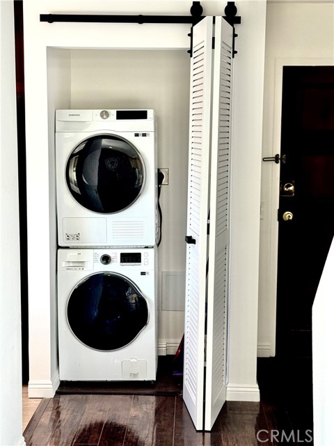Top floor corner unit tucked away in the back of a secured gated 15 condo community. Offering unobstructed views of West Hollywood/Century city. Bottom floor brings you into an open floor living/dining room layout with updated kitchen and all new stainless steel appliances. In unit stackable washer/dryer, vinyl dual pane windows with new vinyl slider door leading to small balcony. Top floor bedrooms have new Carrier brand mini splitters for heating and cooling. Fully remodeled primary bathroom and updated guest bathroom. Recessed lighting throughout both floors. 2 side by side parking spots. Short stroll to both rainbow district for nightlife (Abbey, Roccos, Hi Tops, TomTom, Beaches) and renowned Sunset strip for eateries (Dialog Cafe, Night+Market, Blue Birdy) and entertainment (Whiskey a go go, Viper room, the Roxy). Affordable hoa dues includes water, trash and landscaping, community laundry and small storage. Everything at your fingertips that prime WeHo has to offer making this an exceptional buy. Welcome home!